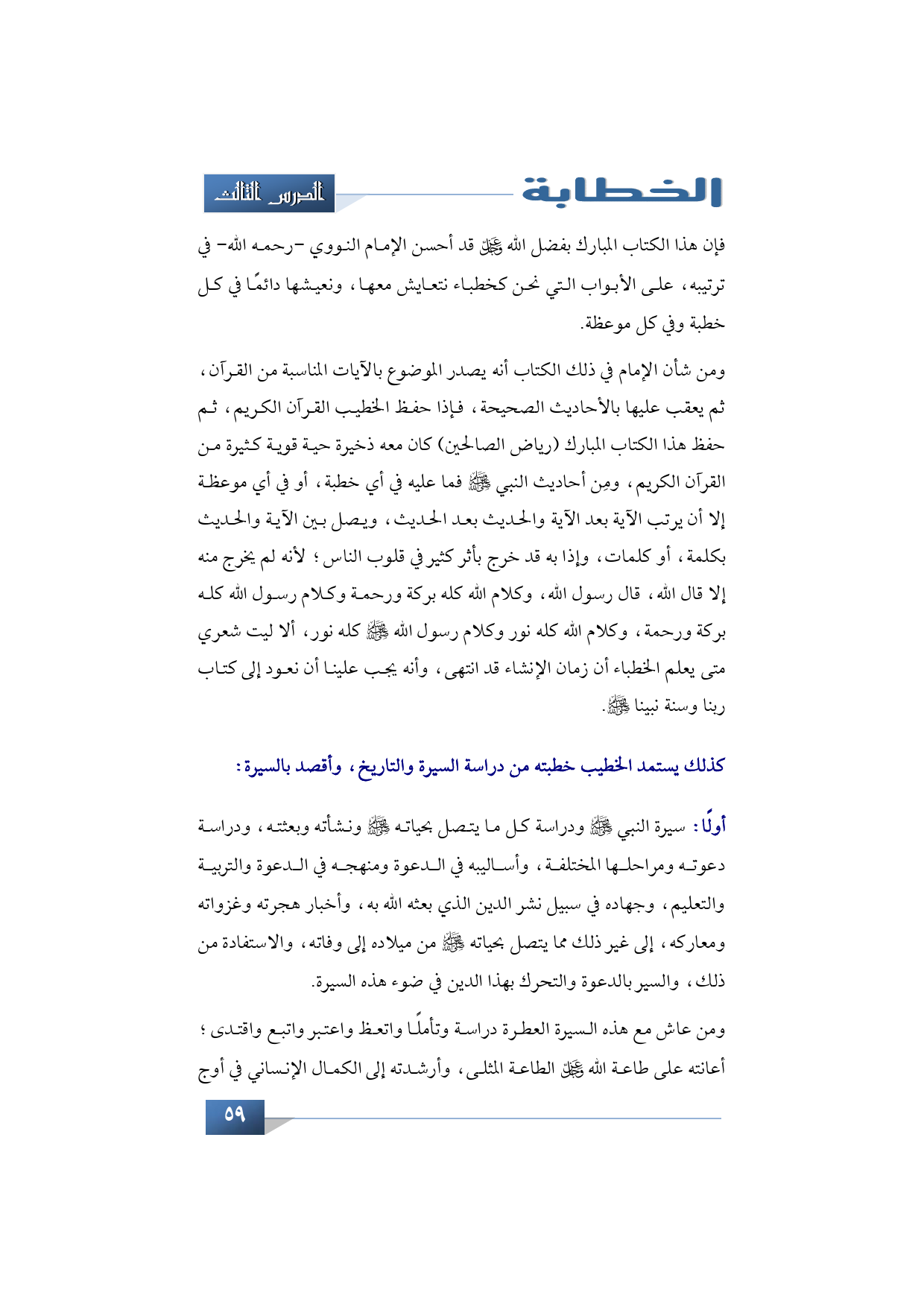 كذلك يستمد الخطيب خطبته من دراسة السيرة والتاريخ، وأقصد بالسيرة: