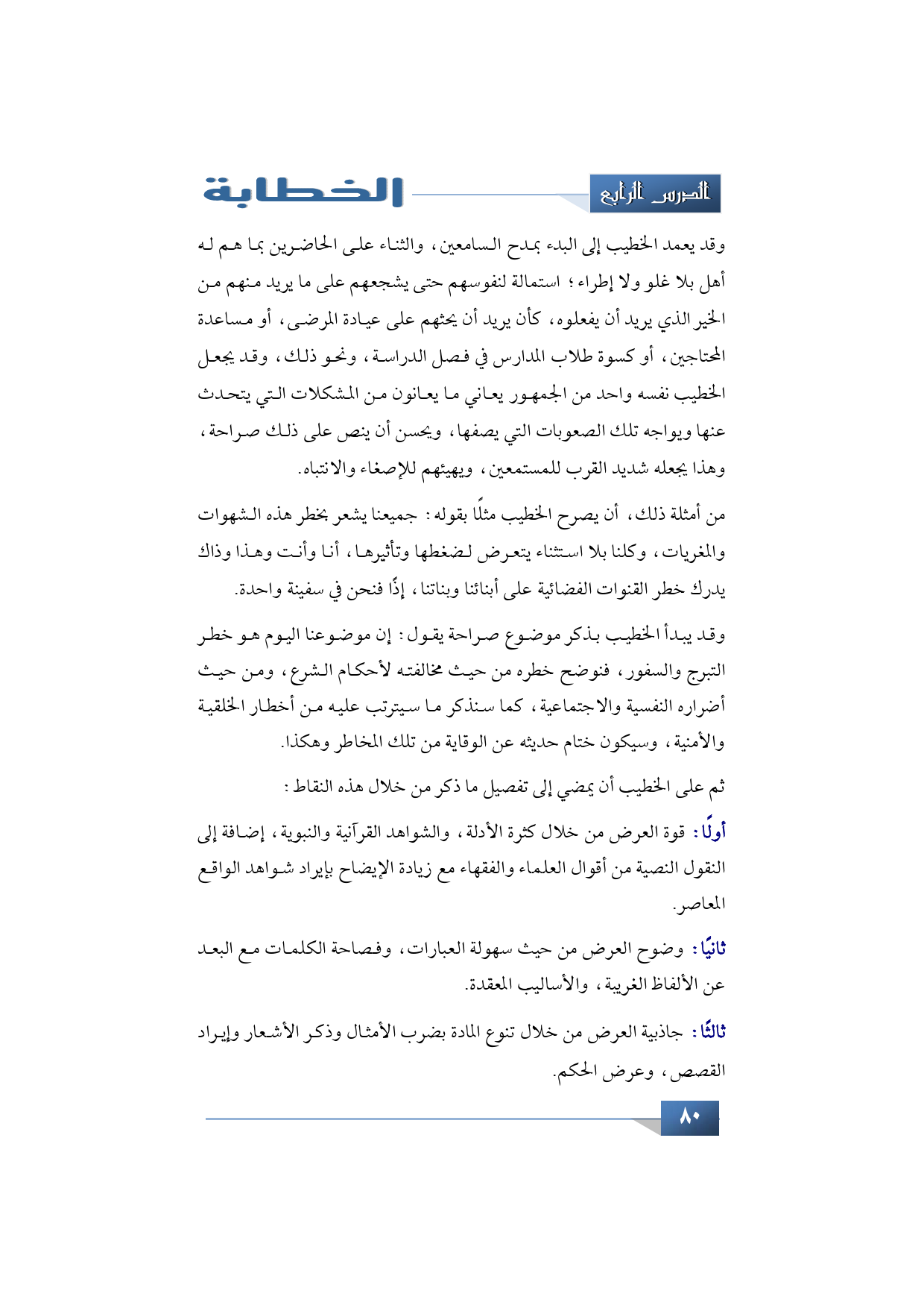 ثانيًا: وضوح العرض من حيث سهولة العبارات، وفصاحة الكلمات مع البعد عن الألفاظ الغريبة، والأساليب المعقدة.