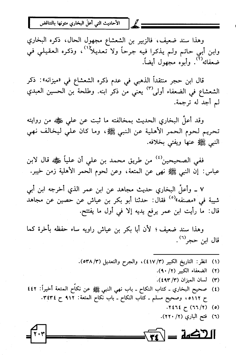 كتاب الأحاديث التي أعل الإمام البخاري متونها بالتناقض