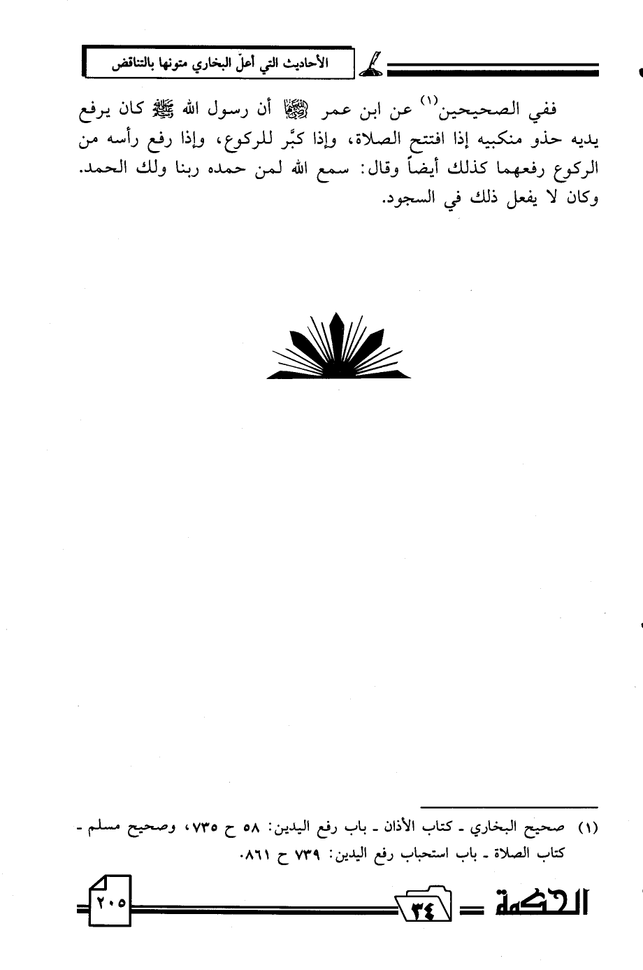(¬1) صحيح البخاري - كتاب الأذان - باب رفع اليدين: 58 ح 735، وصحيح مسلم - كتاب الصلاة - باب استحباب رفع اليدين: 739 ح 861.