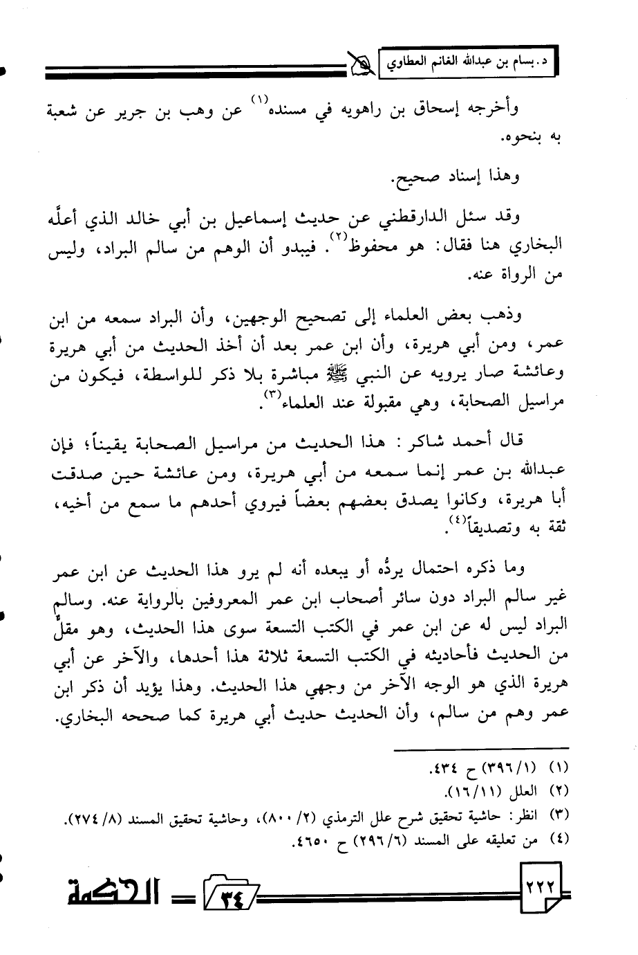 (¬3) انظر: حاشية تحقيق شرح علل الترمذي (2/ 800)، وحاشية تحقيق المسند (8/ 274).