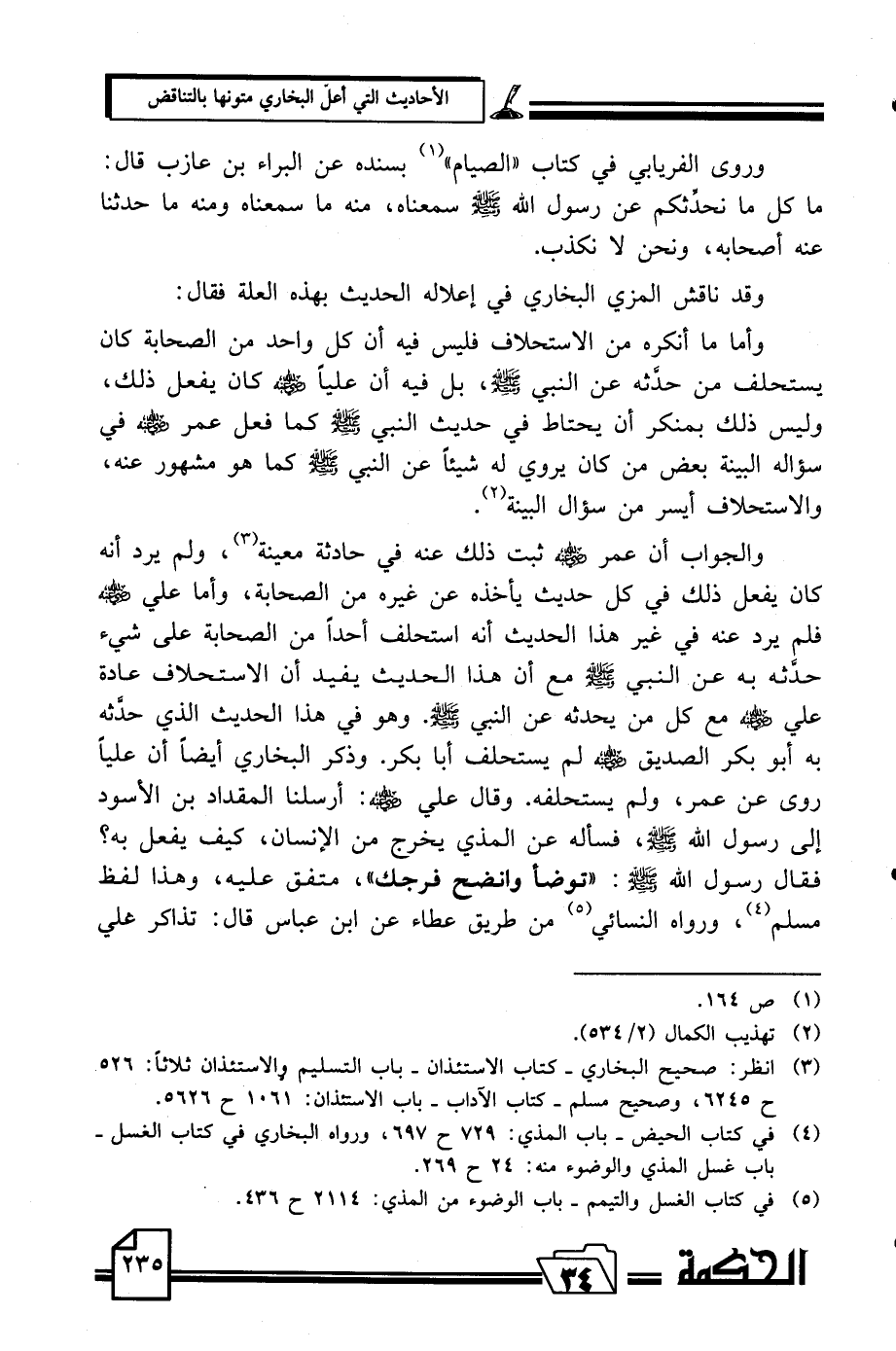 (¬5) في كتاب الغسل والتيمم - باب الوضوء من المذي: 2114 ح 436.