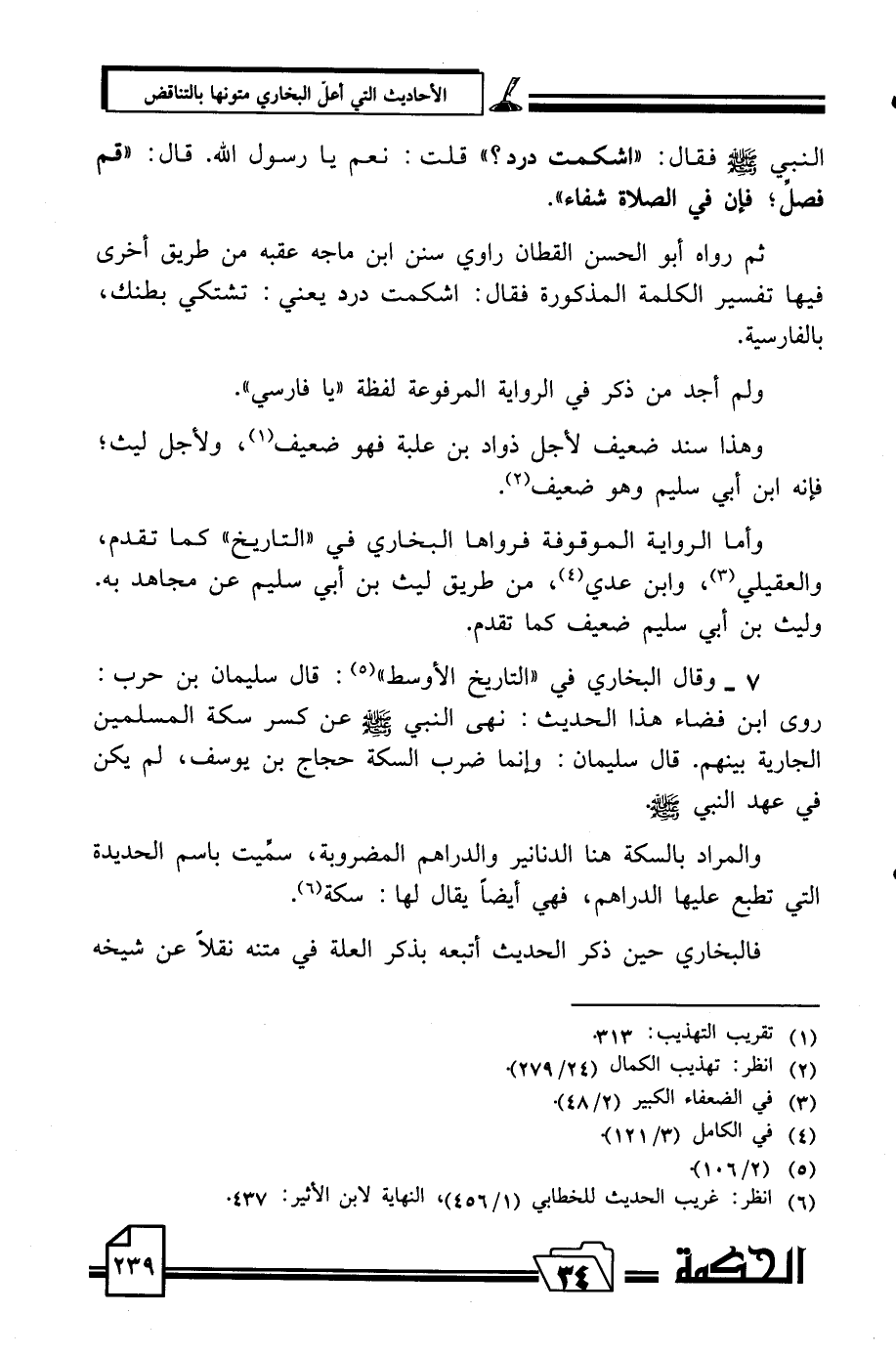 كتاب الأحاديث التي أعل الإمام البخاري متونها بالتناقض