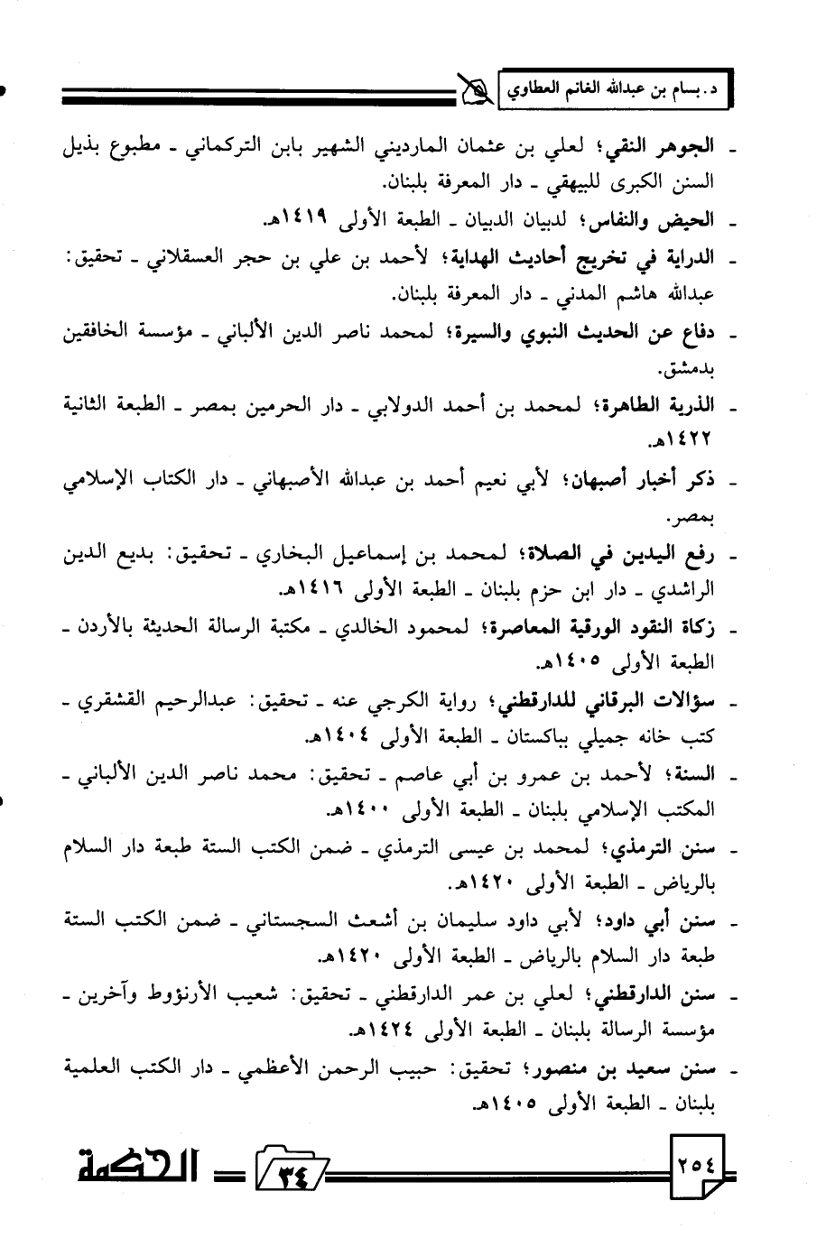 - الجوهر النقي؛ لعلي بن عثمان المارديني الشهير بابن التركماني - مطبوع بذيل السنن الكبرى للبيهقي - دار المعرفة بلبنان.