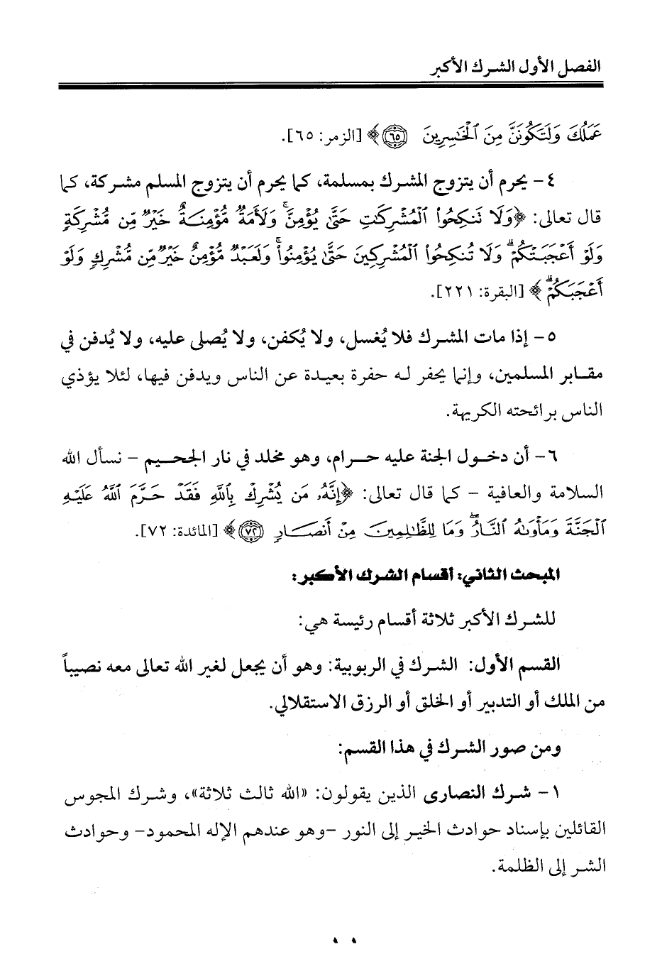 للشرك الأكبر ثلاثة أقسام رئيسة هي: