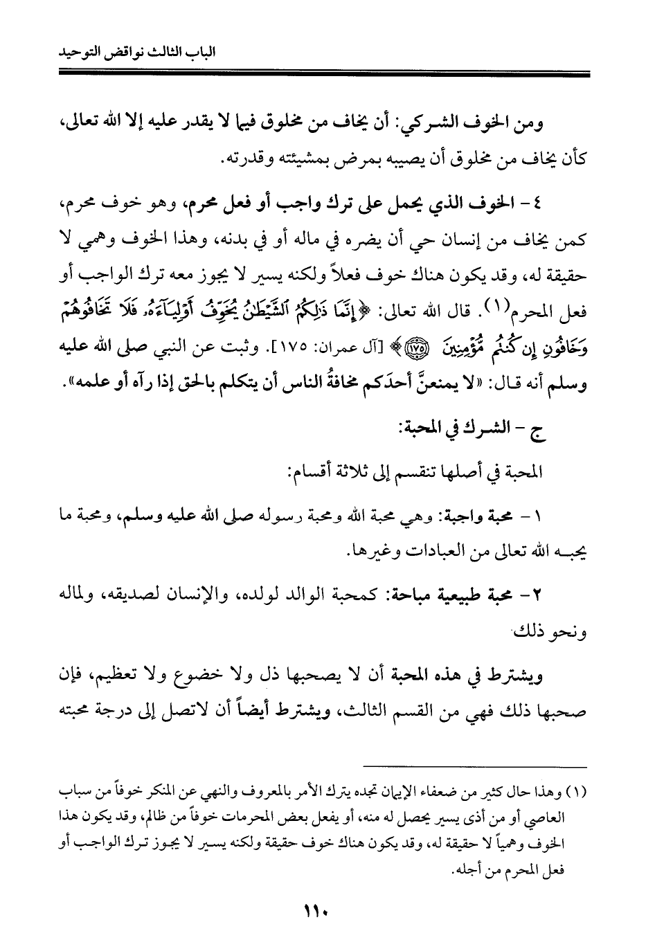ويشترط في هذه المحبة أن لا يصحبها ذل ولا خضوع ولا تعظيم، فإن صحبها ذلك فهي من القسم الثالث، ويشترط أيضًا أن لاتصل إلى درجة محبته