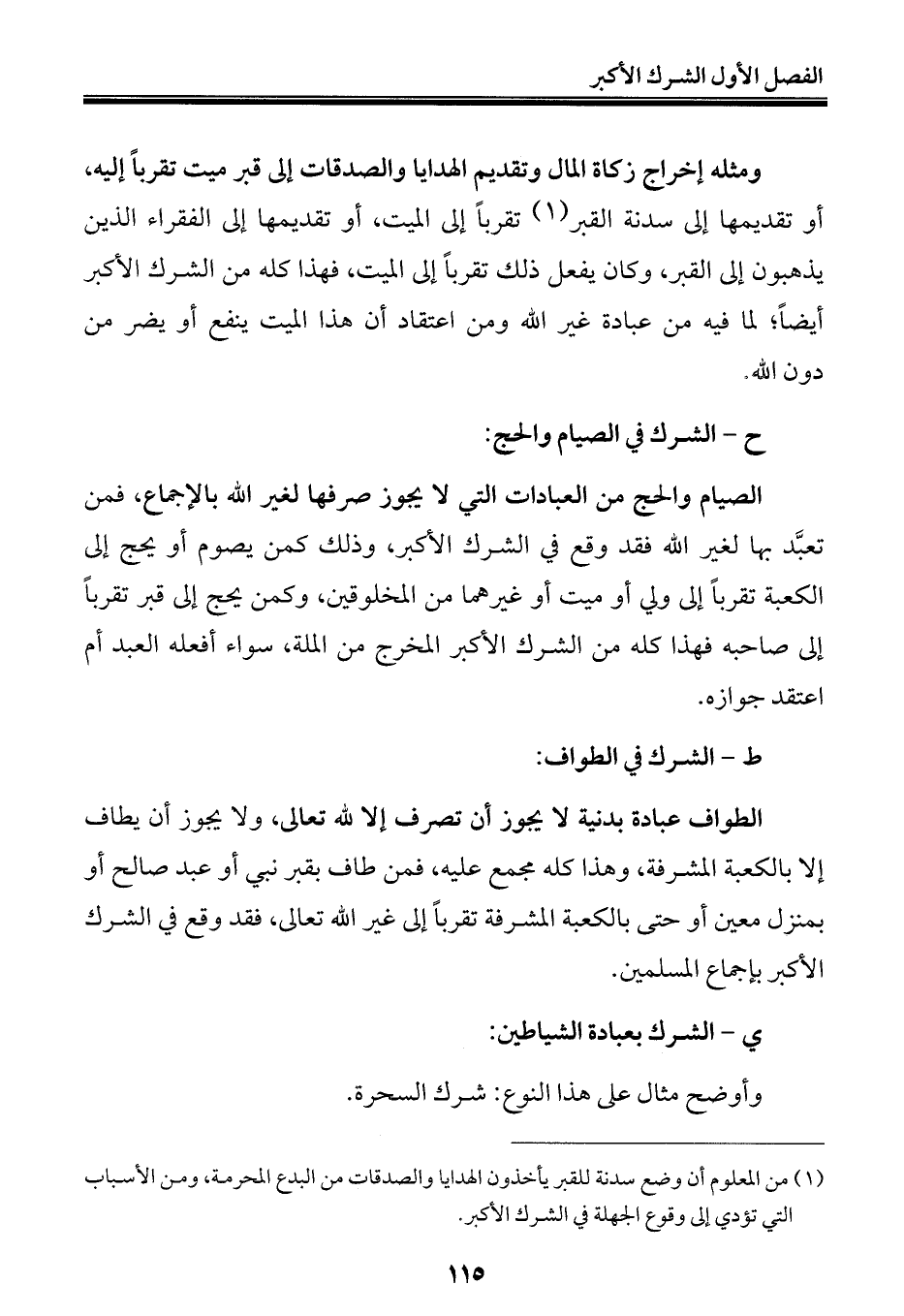 ومثله إخراج زكاة المال وتقديم الهدايا والصدقات إلى قبر ميت تقربًا إليه، أو تقديمها إلى سدنة القبر (¬١) تقربًا إلى الميت، أو تقديمها إلى الفقراء الذين يذهبون إلى القبر، وكان يفعل ذلك تقربًا إلى الميت، فهذا كله من الشرك الأكبر أيضًا؛ لما فيه من عبادة غير الله ومن اعتقاد أن هذا الميت ينفع أو يضر من دون الله.
