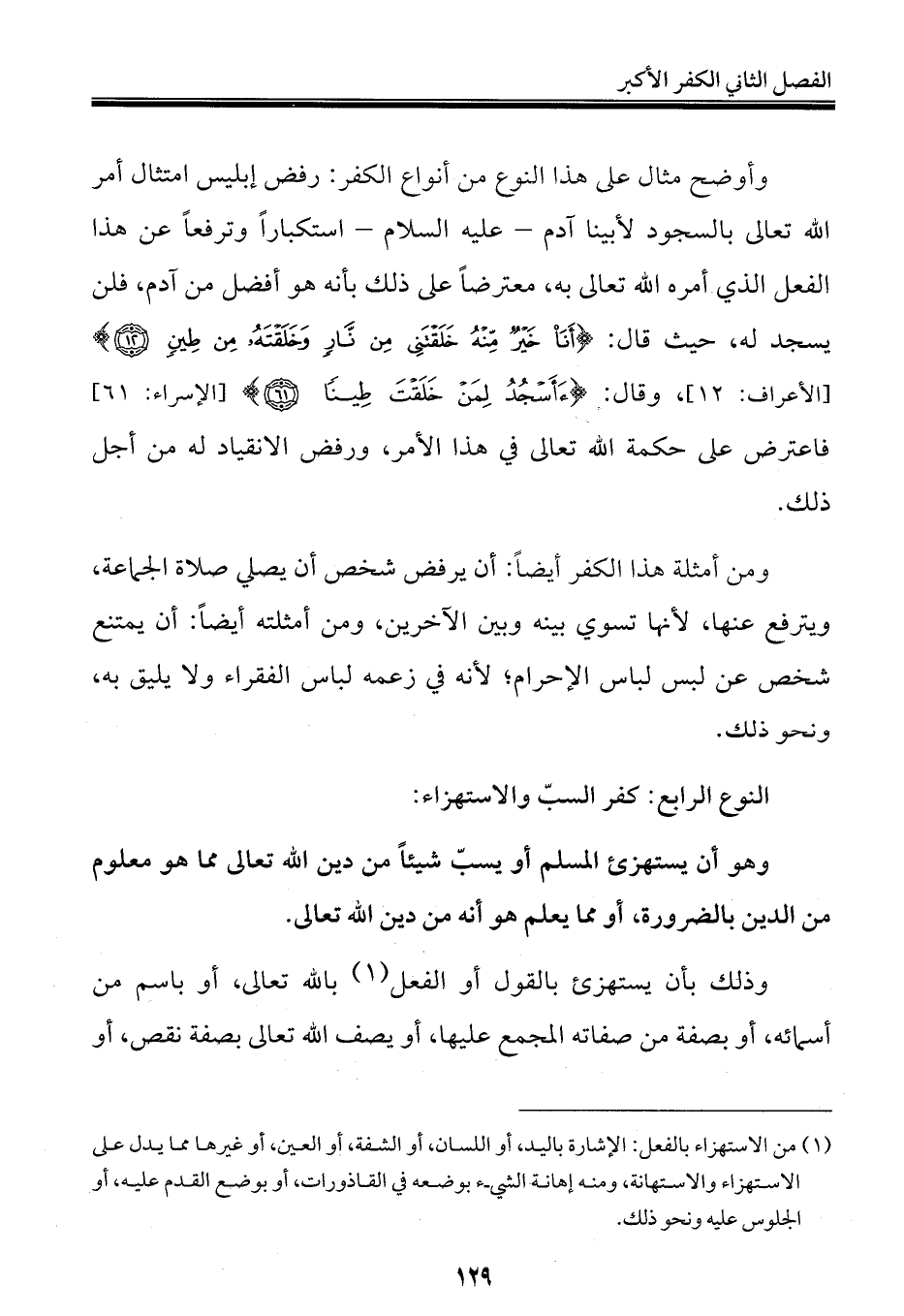(¬١) من الاستهزاء بالفعل: الإشارة باليد، أو اللسان، أو الشفة، أو العين، أو غيرها مما يدل على الاستهزاء والاستهانة، ومنه إهانة - الشيء - بوضعه في القاذورات، أو بوضع القدم عليه، أو الجلوس عليه ونحو ذلك.