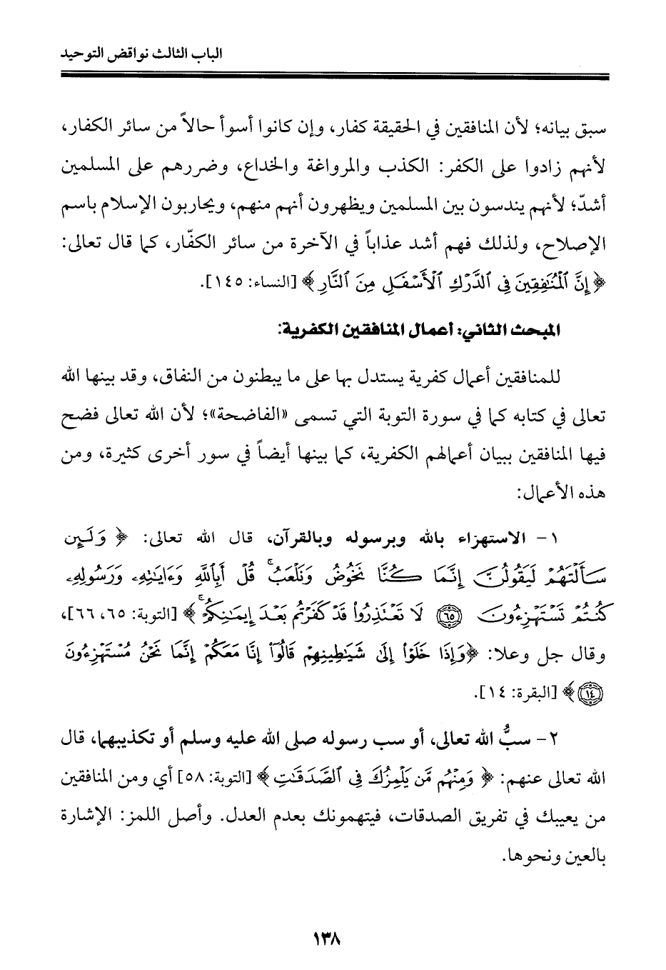 المبحث الثاني: أعمال المنافقين الكفرية:
