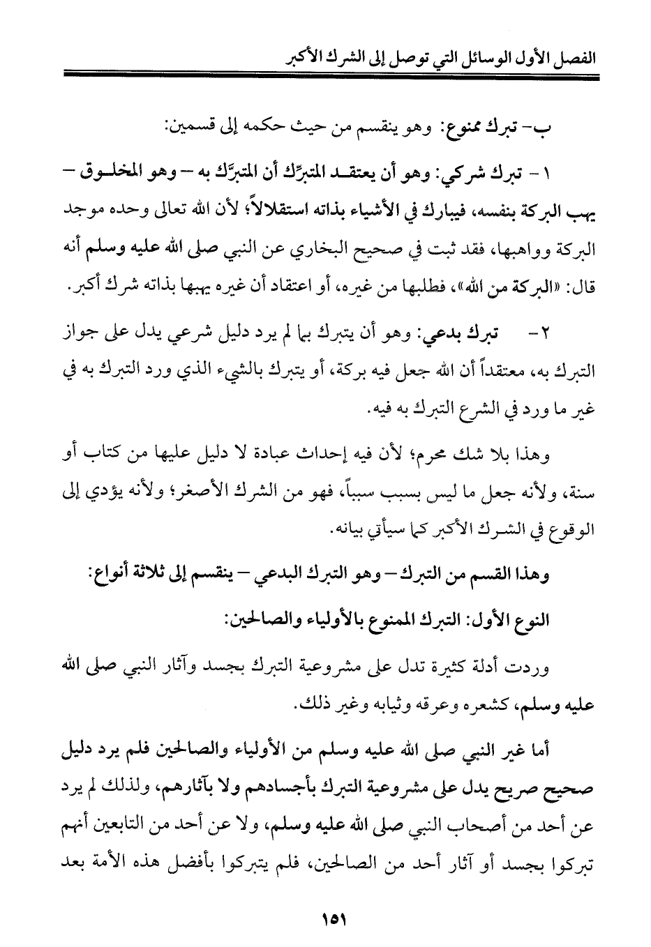 ب - تبرك ممنوع: وهو ينقسم من حيث حكمه إلى قسمين: