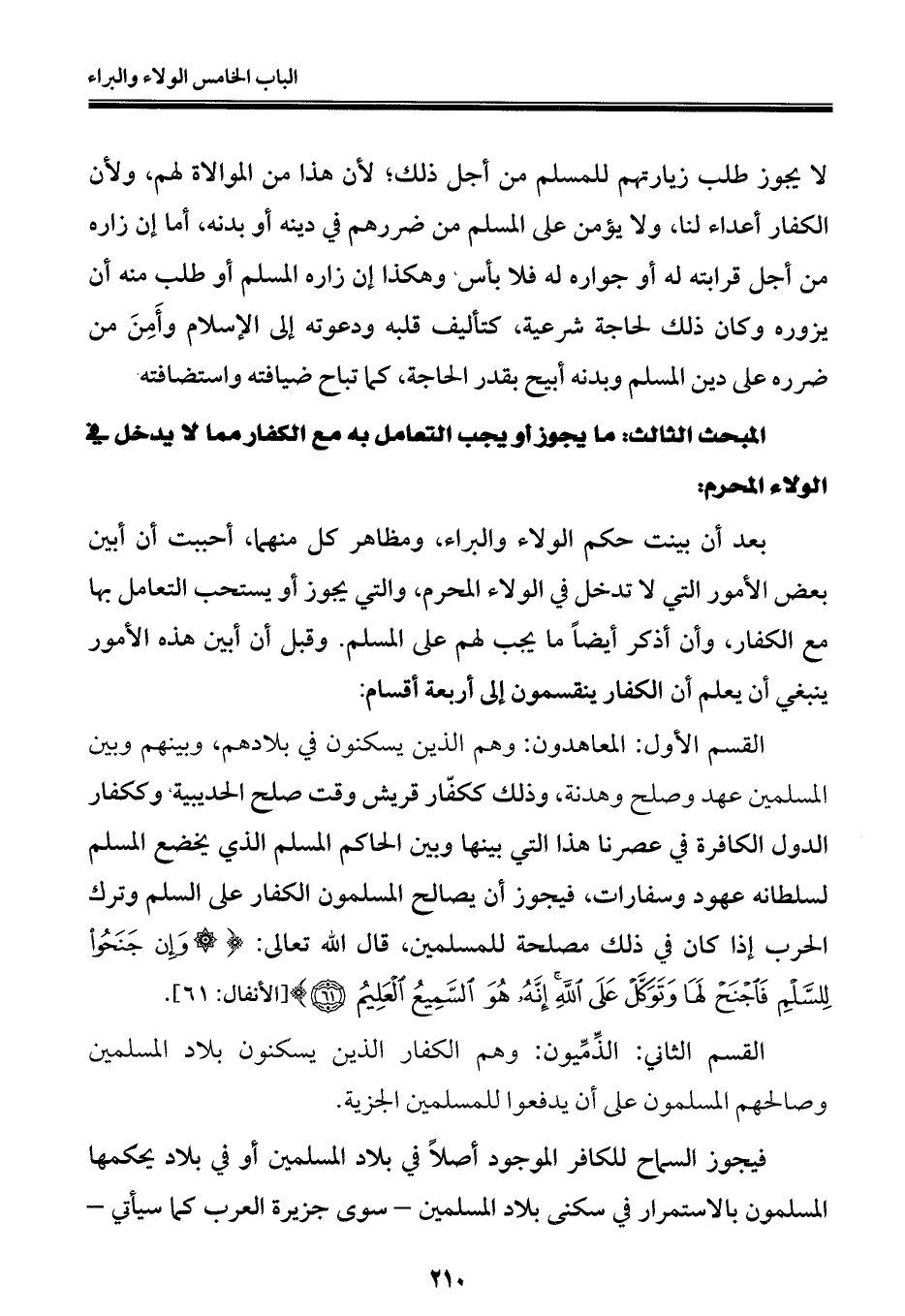المبحث الثالث: ما يجوز أو يجب التعامل به مع الكفار مما لا يدخل الولاء المحرم: