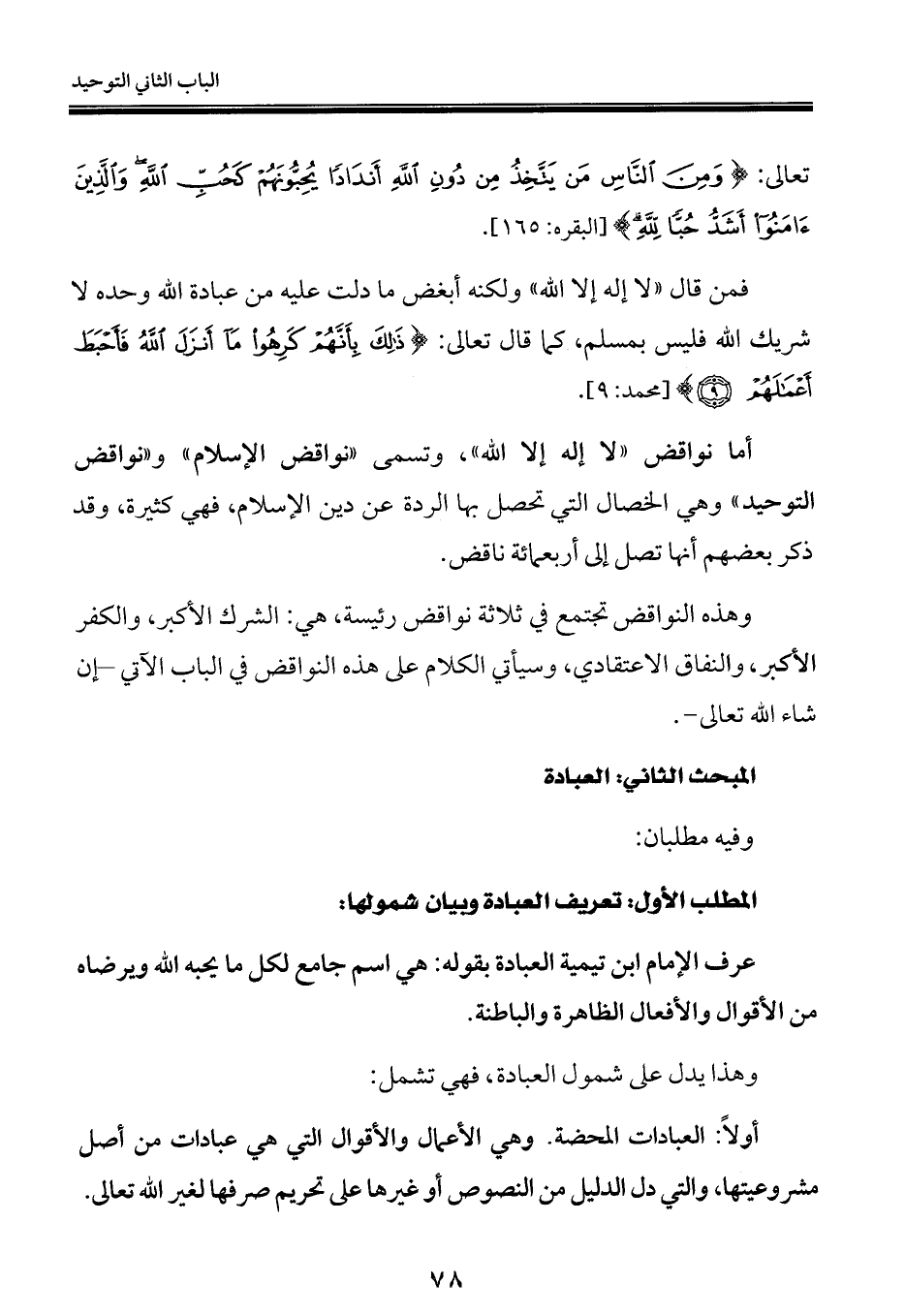 المطلب الأول: تعريف العبادة وبيان شمولها: