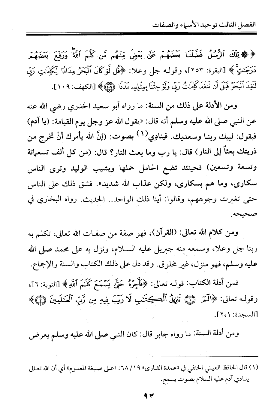 {تِلْكَ الرُّسُلُ فَضَّلْنَا بَعْضَهُمْ عَلَى بَعْضٍ مِنْهُمْ مَنْ كَلَّمَ اللَّهُ وَرَفَعَ بَعْضَهُمْ دَرَجَاتٍ} [البقرة: ٢٥٣]، وقوله جل وعلا: {قُلْ لَوْ كَانَ الْبَحْرُ مِدَادًا لِكَلِمَاتِ رَبِّي لَنَفِدَ الْبَحْرُ قَبْلَ أَنْ تَنْفَدَ كَلِمَاتُ رَبِّي وَلَوْ جِئْنَا بِمِثْلِهِ مَدَدًا (١٠٩)} [الكهف: ١٠٩].