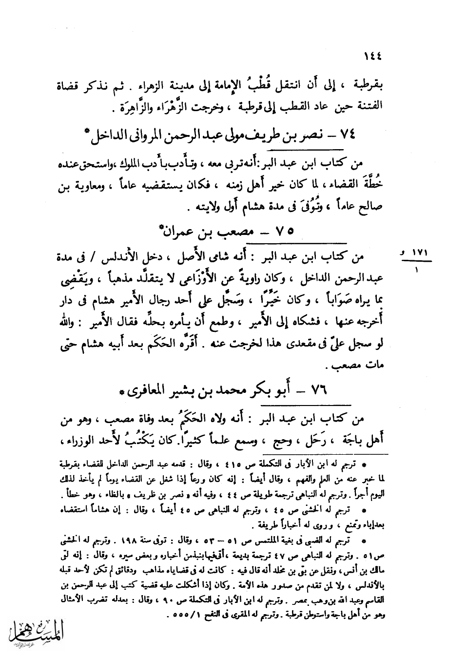 من كتاب ابْن عبد الْبر ولى الْقَضَاء كَمَا تقدم فَكَانَ أول من أفسد هَذِه الخطة وَكَانَ بَاطِنه غير ظَاهره وَكَانَ أسلم بن عبد الْعَزِيز صديقه وَوَصفه بأَشْيَاء قبيحة وَكَانَ مدَار فتواه على مُحَمَّد بن عمر بن لبَابَة وَلما صَحَّ عِنْد الْأَمِير أمره عَزله وَلكنه جعله فِي الوزراء
