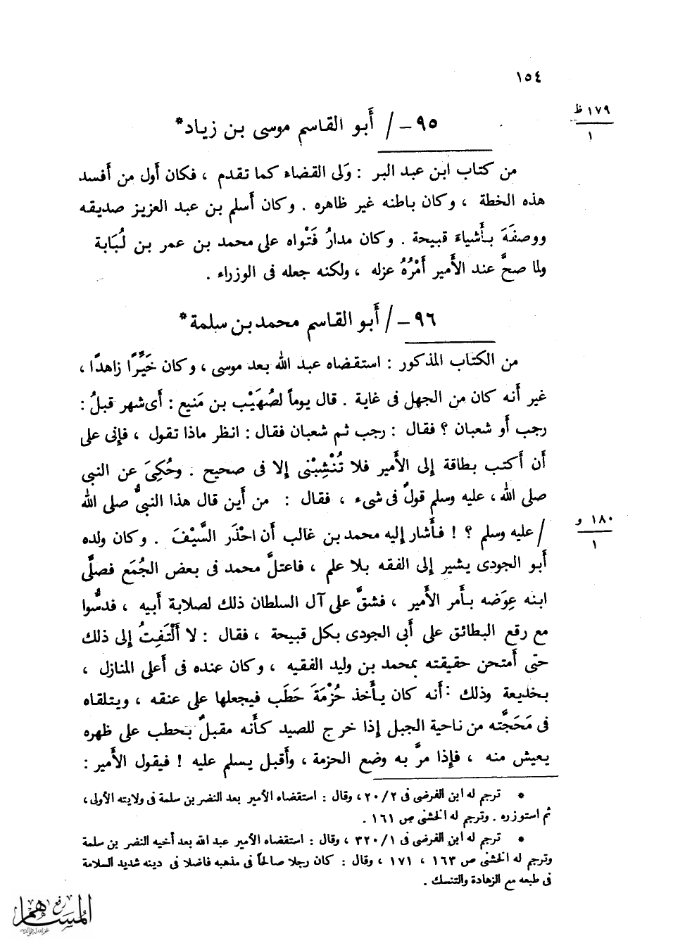 وَإِلَيْهِ انْتَهَت الرياسة فِي الْفِقْه بالأندلس وَبِه انْتَشَر مَذْهَب مَالك هُنَالك وتفقه بِهِ جمَاعَة لَا يُحصونَ وَكَانَ مَعَ إِمَامَته وَدينه مكيناً عِنْد أُمَرَاء الأندلس مُعظما وعفيفاً عَن الولايات منزهاً جلت دَرَجَته عَن الْقَضَاء فَكَانَ أَعلَى قدرا من الْقُضَاة عِنْد وُلَاة الْأَمر هُنَالك لزهده فِي الْقَضَاء وامتناعه مِنْهُ سَمِعت الْفَقِيه الْحَافِظ أَبَا مُحَمَّد عَليّ بن أَحْمد يَقُول مذهبان انتشرا فِي بَدْء أَمرهمَا بالرياسة وَالسُّلْطَان مَذْهَب أبي حنيفَة فَإِنَّهُ لما ولى قَضَاء الْقُضَاة أَبُو يُوسُف كَانَت الْقُضَاة من قبله فَكَانَ لَا يولي قَضَاء الْبِلَاد من أقْصَى الْمشرق إِلَى أقْصَى أَعمال إفريقية إِلَّا أَصْحَابه والمنتمين إِلَى مذْهبه وَمذهب مَالك بن أنس عندنَا فَإِن يحيى كَانَ مكيناً عِنْد السُّلْطَان مَقْبُول القَوْل فِي الْقُضَاة فَكَانَ لَا يَلِي قَاض فِي أقطارنا إِلَّا بمشورته واختياره وَلَا يُشِير إِلَّا بِأَصْحَابِهِ وَمن كَانَ على مذْهبه وَالنَّاس سراع إِلَى الدُّنْيَا والرياسة فَأَقْبَلُوا على مَا يرجون بُلُوغ أغراضهم بِهِ على أَن يحيى بن يحيى لم يل قَضَاء قطّ وَلَا أجَاب إِلَيْهِ وَكَانَ ذَلِك زَائِدا فِي جلالته عِنْدهم وداعياً إِلَى قبُول رَأْيه لديهم وَكَذَلِكَ جرى الْأَمر فِي إفريقية لما ولى الْقَضَاء بهَا سَحْنُون بن سعيد ثمَّ نَشأ النَّاس على مَا انْتَشَر وَكَانَت وَفَاة يحيى بن يحيى فِي رَجَب لثمان بَقينَ مِنْهُ من سنة أَربع وَثَلَاثِينَ وَمِائَتَيْنِ وَخلف بعده ابْنه عبيد الله الْفَقِيه الْمَشْهُور وَمِمَّنْ أَخذ عَنهُ من الْأَعْلَام أَبُو عبد الله مُحَمَّد بن وضاح وَزِيَاد بن مُحَمَّد بن زِيَاد الْمَعْرُوف بشبطون وَإِبْرَاهِيم بن قَاسم بن هِلَال وَمُحَمّد بن أَحْمد الْعُتْبِي وَإِبْرَاهِيم بن مُحَمَّد بن بَان