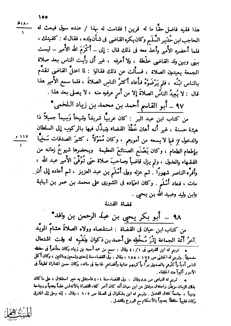 من كتاب ابْن اليسع ذُو الْوَقار والسكينة والمكانة المكينة وَذكر أَنه رَحل وساد أترابه وَألف كتابا فِي الحَدِيث وَكَانَ فِي الْمِائَة الْخَامِسَة فِي زمن الْمُعْتَمد بن عباد