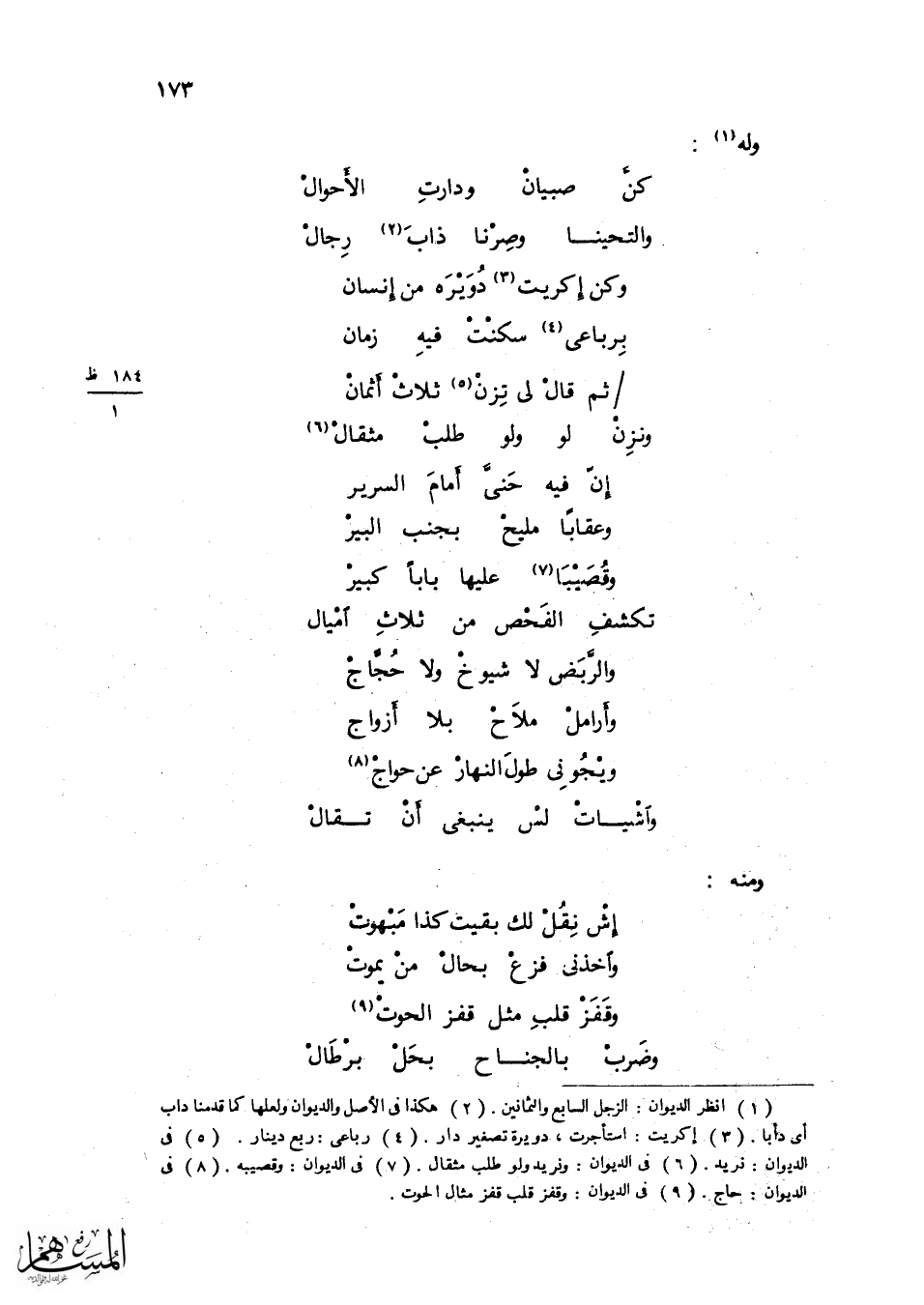 واستجاز وزيره فَقَالَ الِابْتِدَاء لأمير الْمُؤمنِينَ فَقَالَ ... وَأَنْتُم جعلتم مهجتي مسكن الجوى ... وانتم جعلتم مقلتي مسكن السهد ...