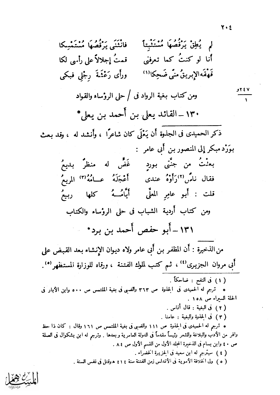 من الجذوة قَاضِي الْجَمَاعَة بقرطبة سمع من أبي مُحَمَّد قَاسم بن أصبغ الْبَيَانِي وَغَيره وَكَانَ فَقِيها فَاضلا نبيلاً جَلِيلًا وَله كتاب فِي الْفِقْه سَمَّاهُ الْخِصَال كَانَ فِي أَوَائِل الدول العامرية وَفِي = كتاب الْقُضَاة ذكره وروى عَنهُ القَاضِي أَبُو الْوَلِيد يُونُس بن عبد الله بن مغيث بن الصفار أَبُو بكر عبد الرَّحْمَن بن أَحْمد بن حوبال وَغَيرهمَا