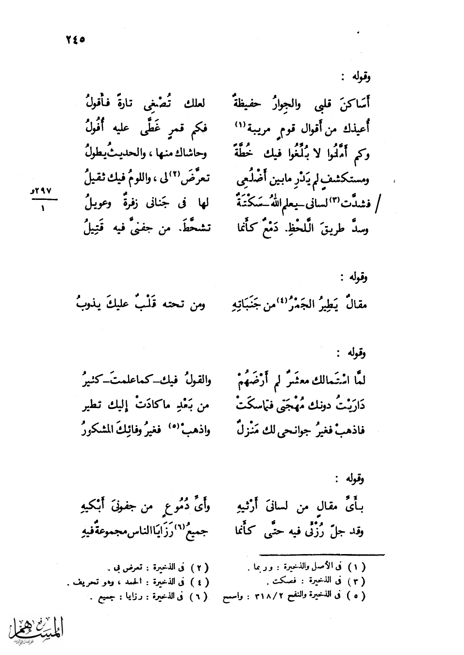وَقَالَ ابْن الْأَمَام بَحر الْعُلُوم ومام كل مَحْفُوظ وَمَعْلُوم ولد أشعار تشوق فِيهَا إِلَى بَغْدَاد وَإِلَى الْحجاز وَهُوَ مَذْكُور فِي كتاب السمط وَاجْتمعَ مَعَ عبد الْمُؤمن