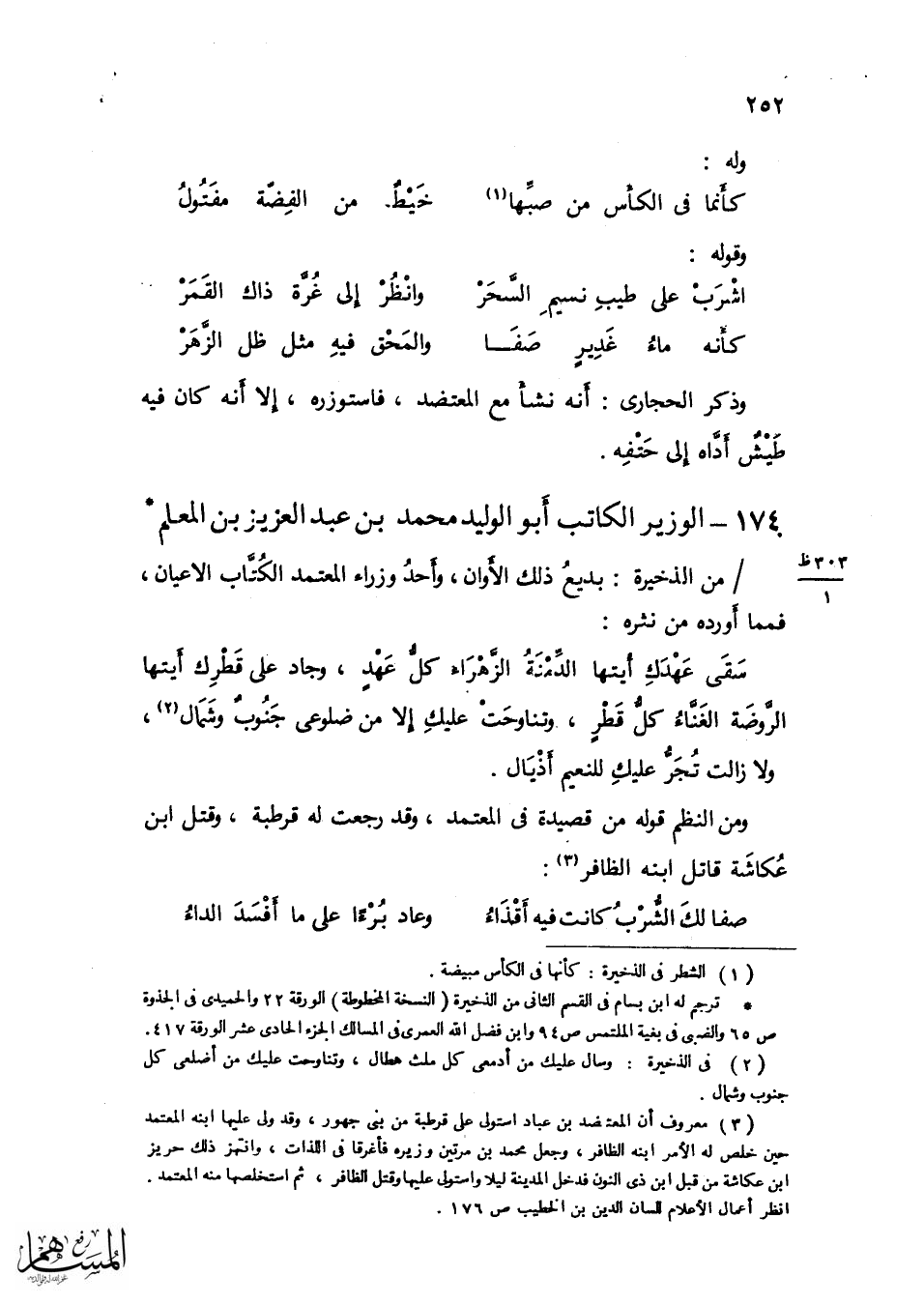 وَكَانَ قد خرج من إشبيلية فصحب بالمهدية مُلُوكهَا الصنهاجيين وَتوجه فِي رِسَالَة إِلَى مصر فسجن فِي الْقَاهِرَة فِي خزانَة البنود وَكَانَ فِيهَا خَزَائِن من أَصْنَاف الْكتب فَأَقَامَ بهَا نَحْو عشْرين سنة فَخرج مِنْهَا وَقد برع فِي عُلُوم كَثِيرَة من حَدِيثَة وقديمة وصنف = كتاب الحديقة على منزع كتاب الْيَتِيمَة فِي فضلاء عصره وصنف الرسَالَة المصرية وصنف فِي الطِّبّ والتنجيم والألحان وَعنهُ أَخذ أهل إفريقية الألحان الَّتِي هِيَ الْآن بِأَيْدِيهِم وَعَاد إِلَى المهدية فجل قدره وَعظم عِنْد مُلُوكهَا ذكره وأعقب هُنَالك عقباً نابهاً وَقد تقدّمت أبياته فِي بركَة الْحَبَش والأهرام وَوجدت فِي ديوانه مَنْسُوبا لَهُ ... أشهر الصَّوْم مَا مثل ... ك عِنْد الله من شهر