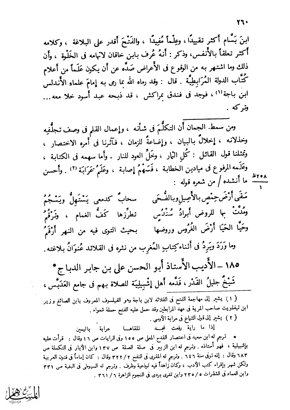 أَنه الْآن شَاعِر خليفتهم بمراكش وعنوان طبقته قَوْله فِي ابْن هود يصف راياته السود ... أَعْلَامه السود إِعْلَام بسؤدده ... كَأَنَّهَا فَوق خد الْملك خيلان ...
