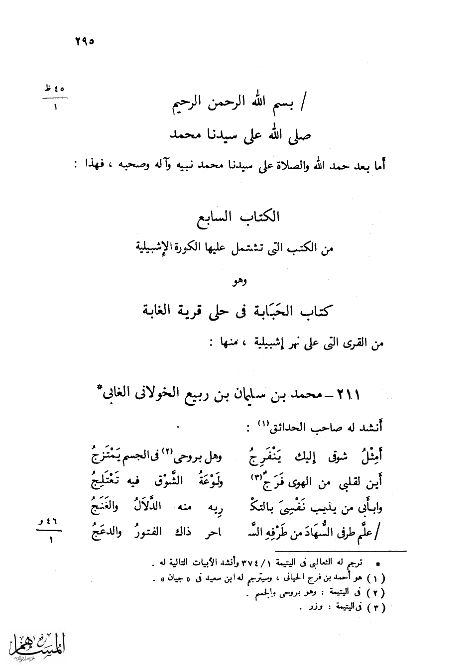 شَاعِر مَشْهُور من شعراء الْمِائَة السَّابِعَة اجْتمع بِهِ وَالِدي فِي سبتة وَغَيرهَا وَمن مَشْهُور شعره ومستحسنه قَوْله ... صبوت وَهل عَار على الْحر إِن صبا ... وَقيد بِعشر الْأَرْبَعين إِلَى الصِّبَا