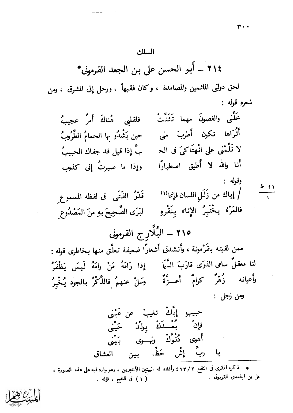 فَاضل ذُو بَيت مَشْهُور هُنَالك أخرج أهل القلعة بَيته بأسره لما ثَارُوا على المصامدة لَان نسبهبم فِي هسكورة وَمن شعره قَوْله