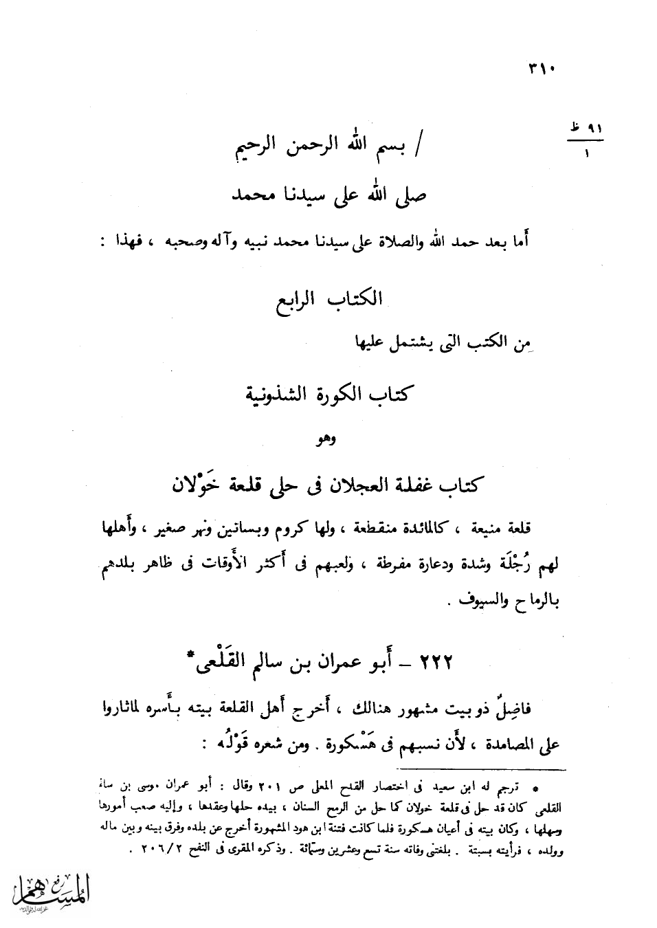 أما بعد حمد الله وَالصَّلَاة على سيدنَا مُحَمَّد نبيه وَآله وَصَحبه فَهَذَا الْكتاب التَّاسِع
