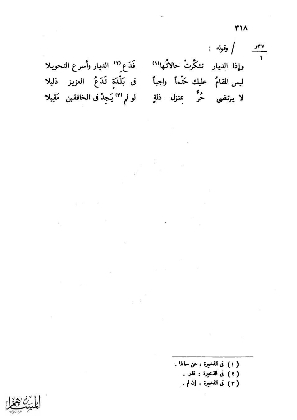 إِذا مَا انصب أَزْرَق مستطيلاً ... تَدور فِي الْبحيرَة واستدارا