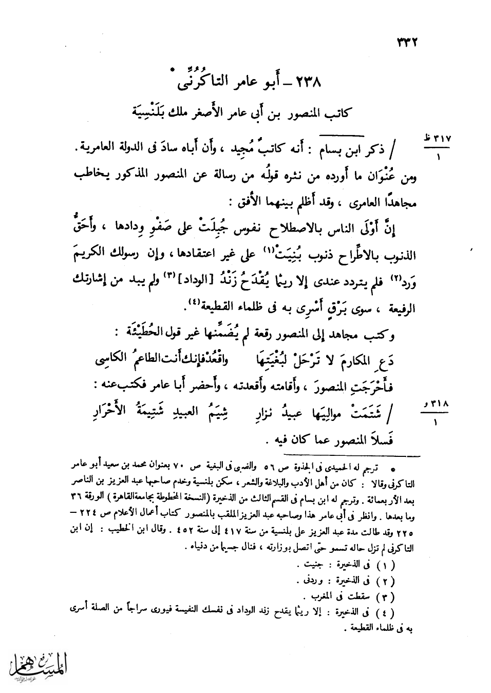 من سمط الجمان بدر تطلع فِي سَمَاء الْجَلالَة وغصن تفرع فِي أرومة الشّرف والأصالة لم يدنس ثوب شبيبته براح وَلَا أنْفق أَيَّام غرارته فِي لَهو وَلَا أفراح