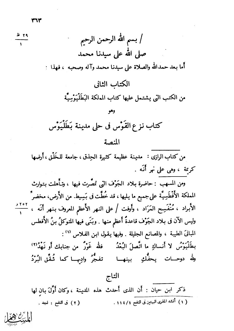 من الْكتب الَّتِي يشْتَمل عَلَيْهَا = كتاب المملكة البطليوسية