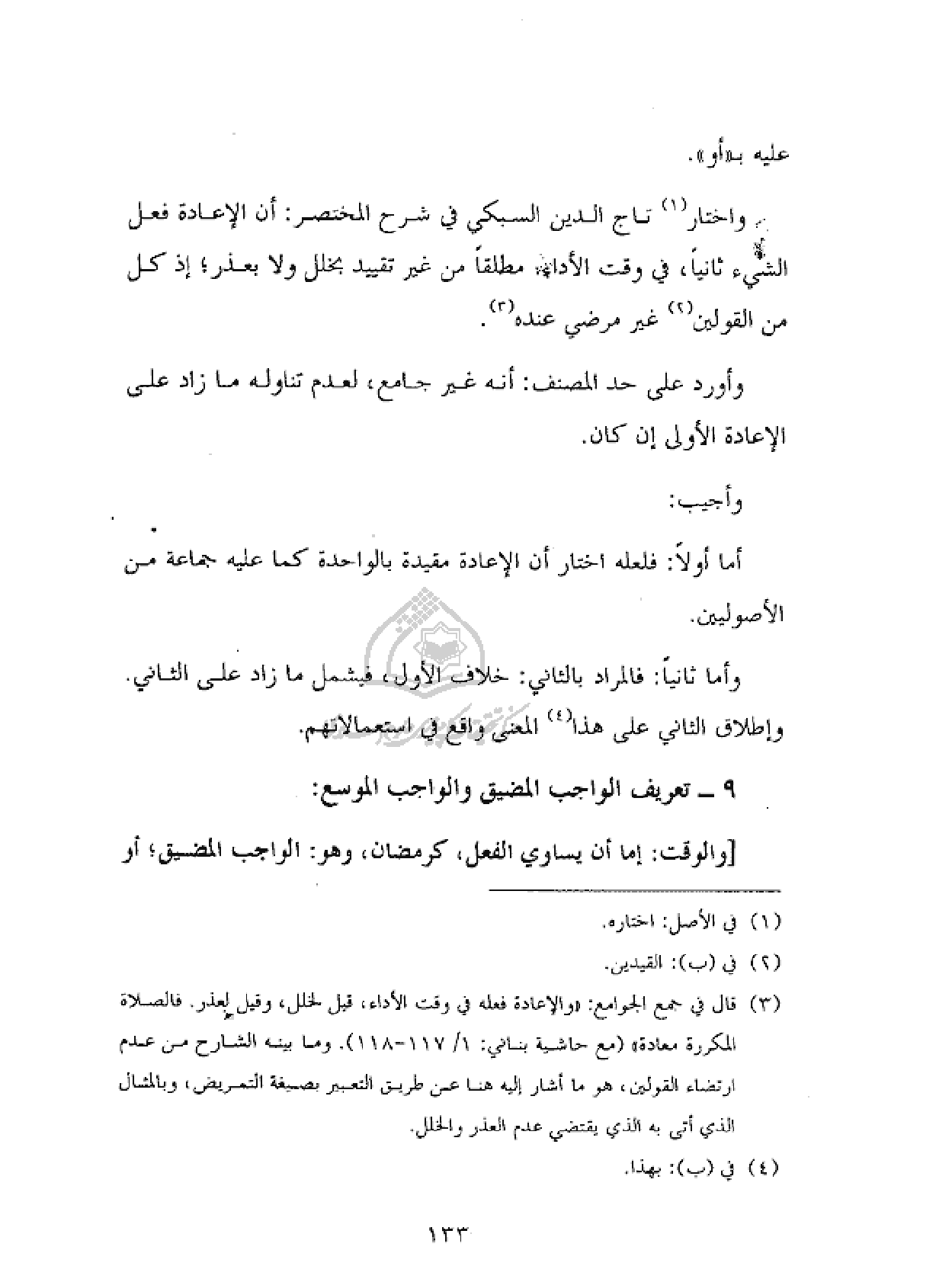 ٩ - تعريف الواجب المضيق والواجب الموسع: