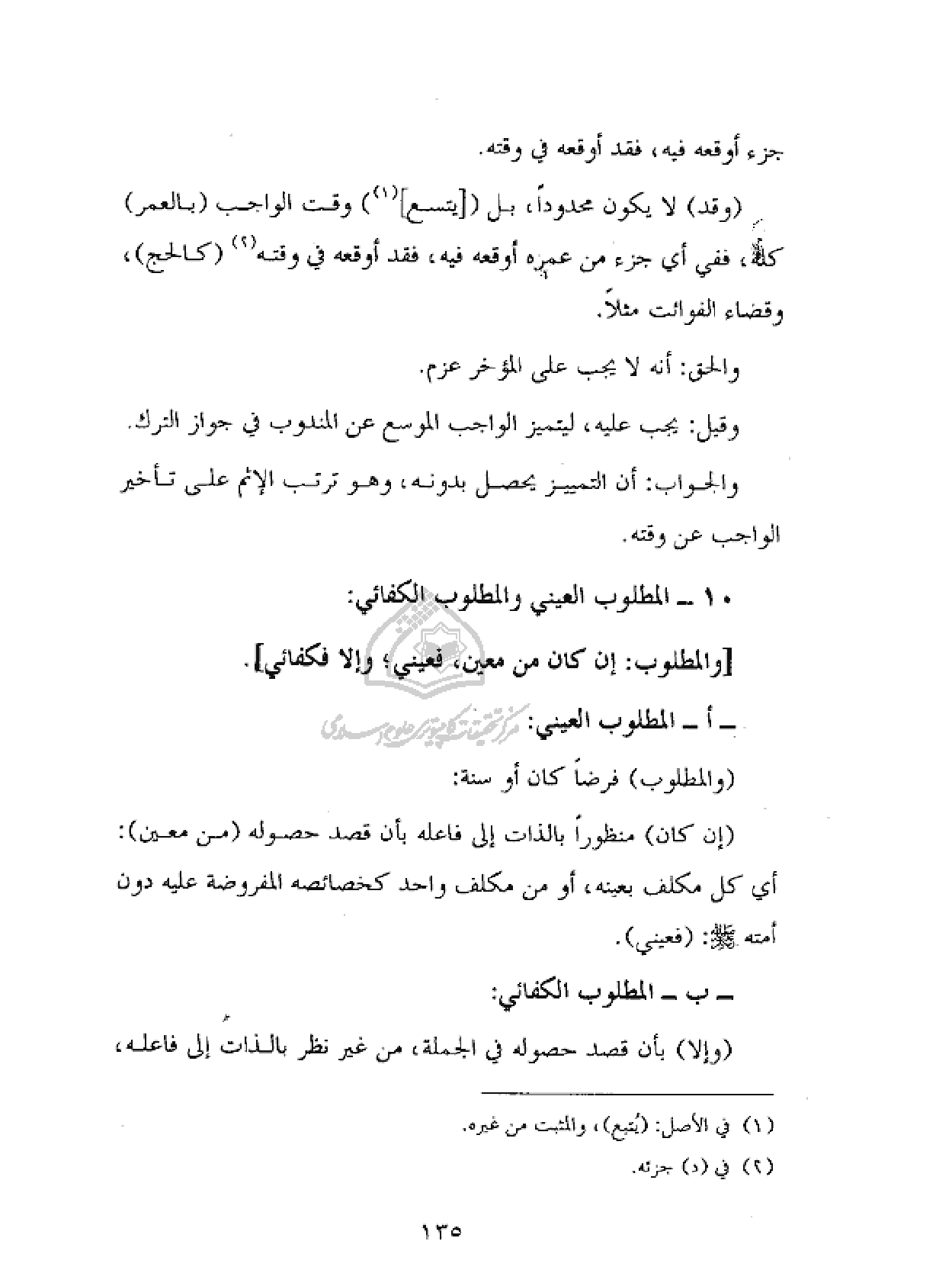 ١٠ - المطلوب العيني والمطلوب الكفائي: