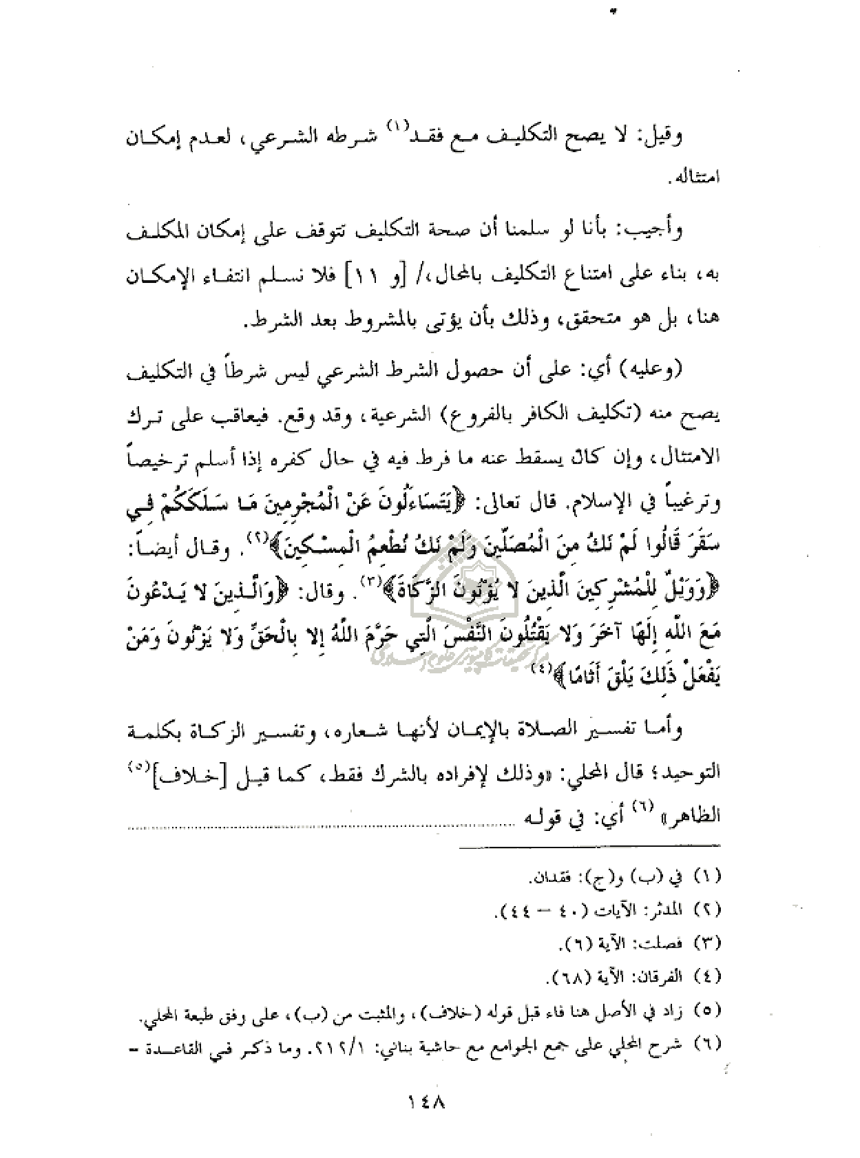 وأما تفسير الصلاة بالإيمان لأنها شعاره، وتفسير الزكاة بكلمة التوحيد؛ قال المحلي : «وذلك لإفراده بالشرك فقط، كما قيل [خلاف] (¬٥) الظاهر» (¬٦) أي : في قوله. . .