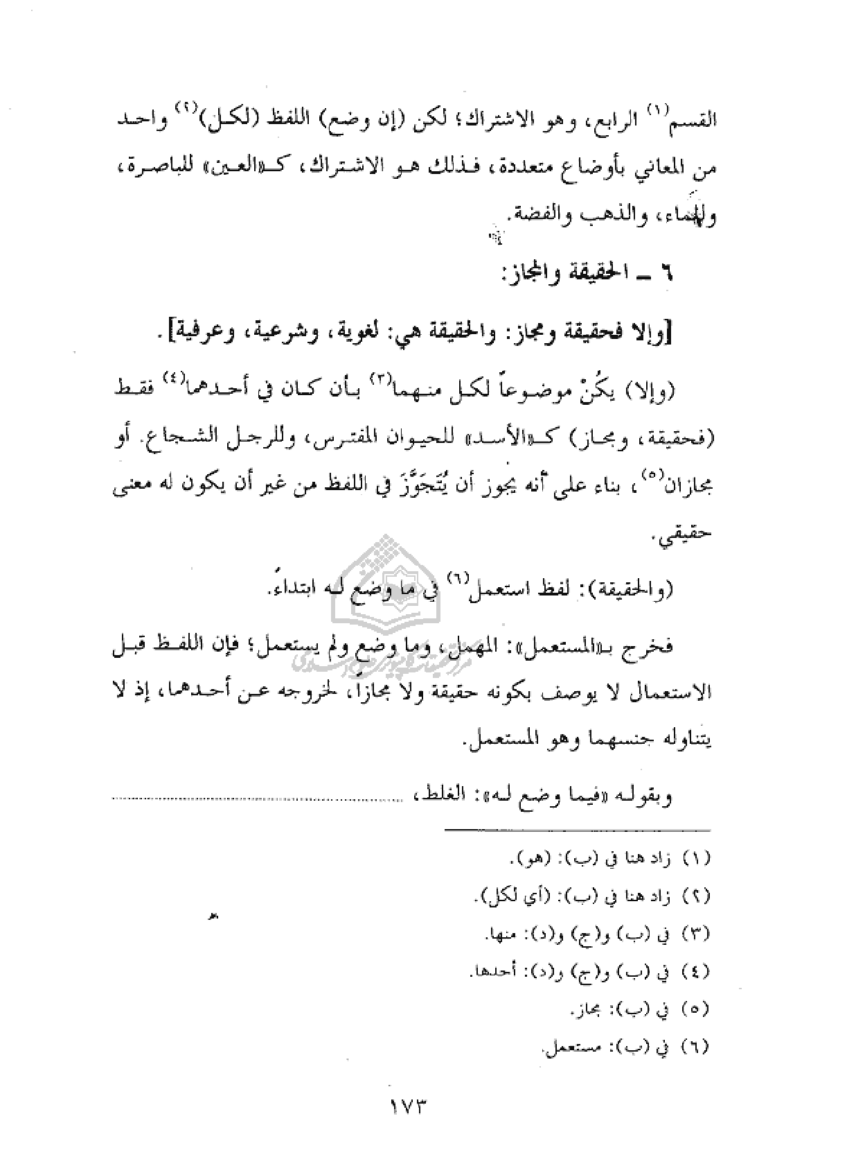 القسم (¬١) الرابع، وهو الاشتراك؛ لكن (إن وضع) اللفظ (لكل) (¬٢) واحد من المعاني بأوضاع متعددة، فذلك هو الاشتراك، ك «العين» للباصرة، وللماء، والذهب والفضة.