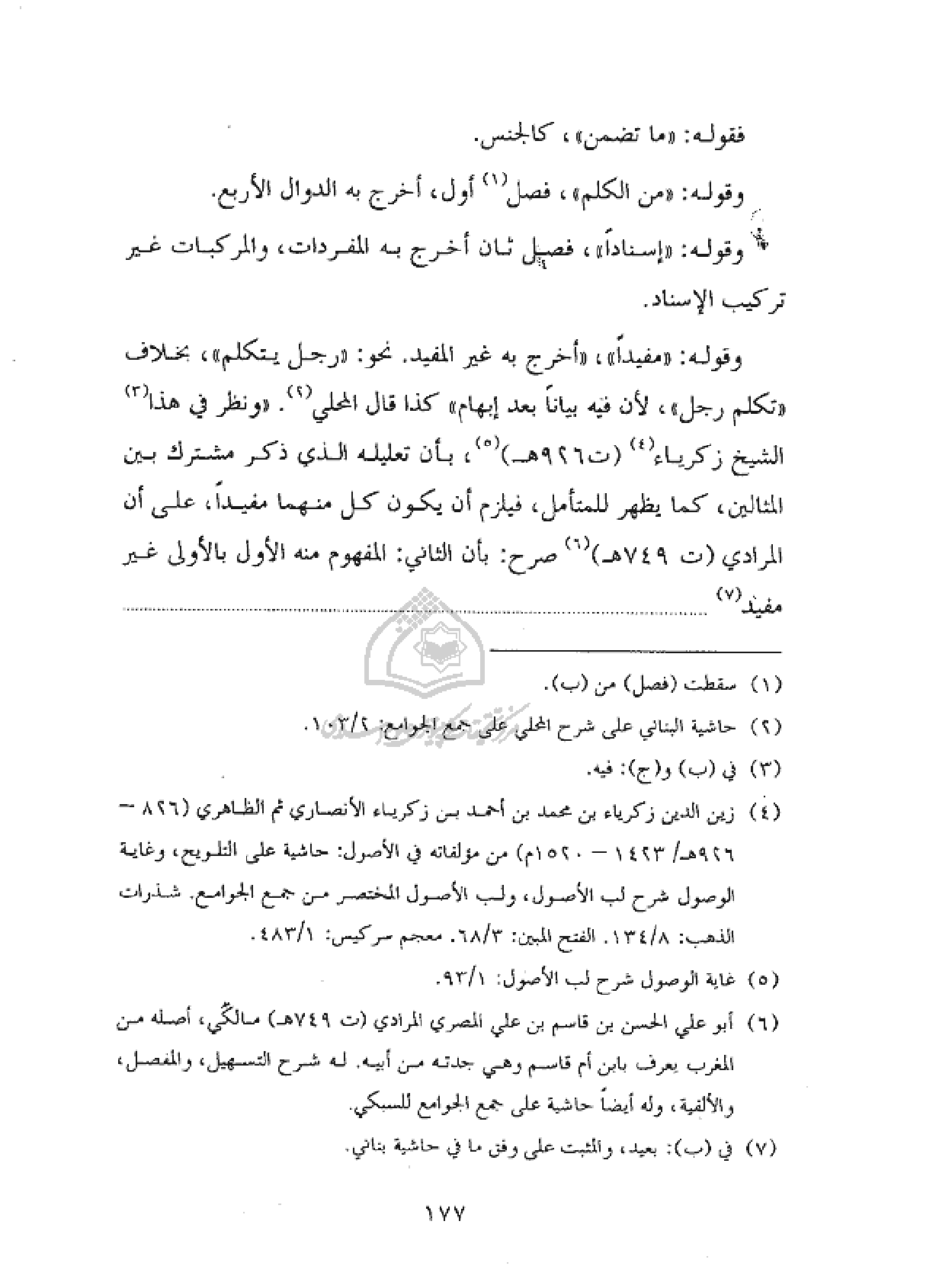 (¬٤) زين الدين زكرياء بن محمد بن أحمد بن زكرياء الأنصاري ثم الظاهري (٨٢٦ - ٩٢٦ هـ/١٤٢٣ - ١٥٢٠ م) من مؤلفاته في الأصول : حاشية على التلويح، وغاية الوصول شرح لب الأصول، ولب الأصول المختصر من جمع الجوامع. شذرات الذهب : ٨/ ١٣٤. الفتح المبين : ٣/ ٦٨. معجم سركيس : ١/ ٤٨٣.
