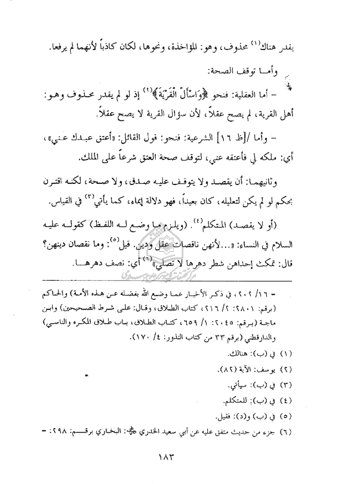 - أما العقلية : فنحو {وَسْئَلِ الْقَرْيَةَ} (¬٢) إذ لو لم يقدر محذوف وهو :