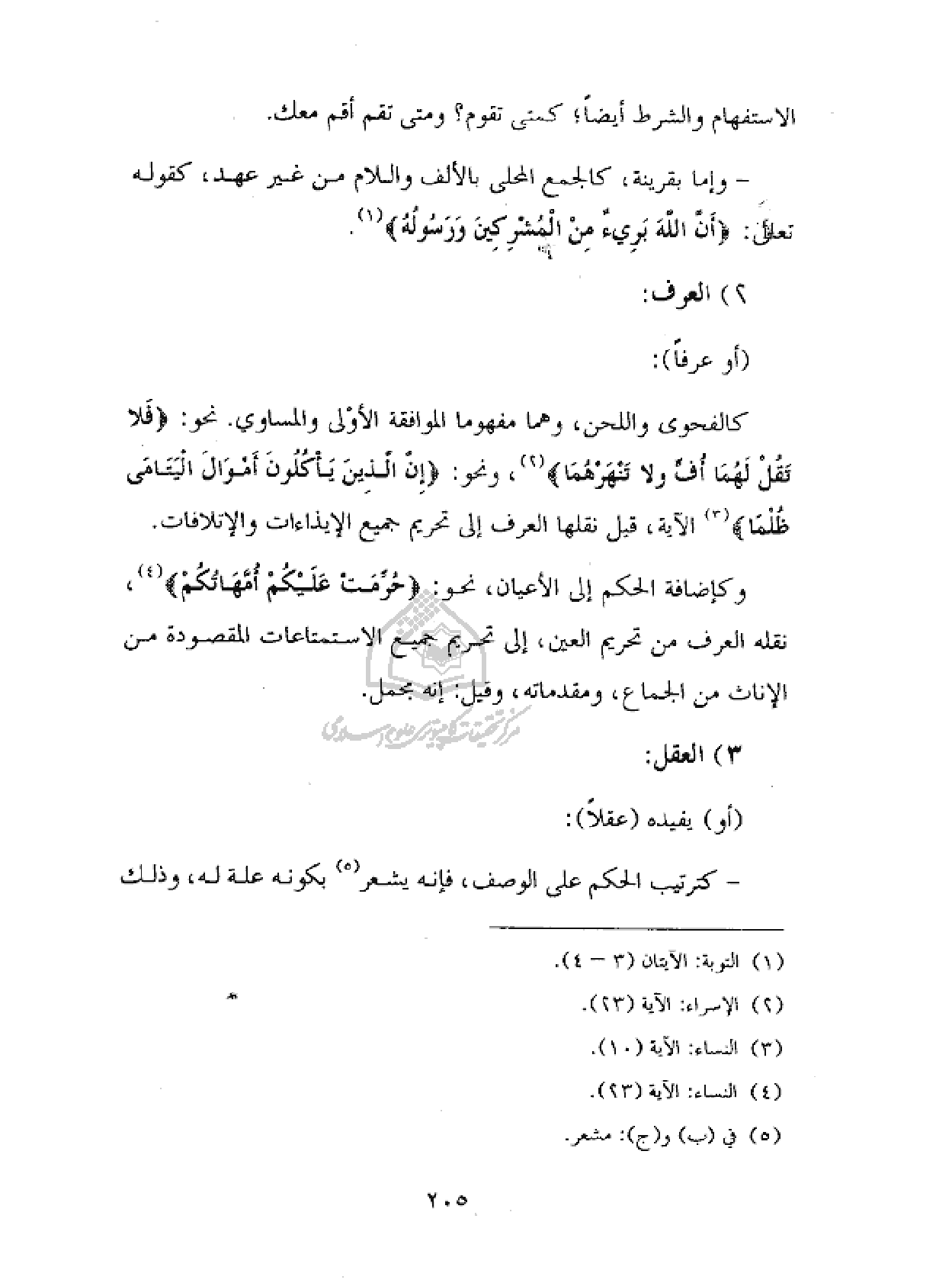 كالفحوى واللحن، وهما مفهوما الموافقة الأولى والمساوي. نحو: {فَلا تَقُلْ لَهُما أُفٍّ وَلا تَنْهَرْهُما} (¬٢)، ونحو: {إِنَّ الَّذِينَ يَأْكُلُونَ أَمْوالَ الْيَتامى ظُلْماً} (¬٣) الآية، قيل نقلها العرف إلى تحريم جميع الإيذاءات والإتلافات.