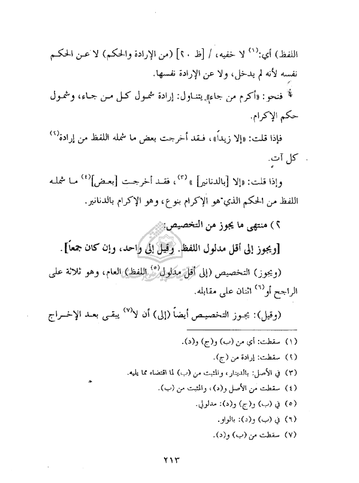 وإذا قلت: «إلا [بالدنانير]» (¬٣)، فقد أخرجت [بعض] (¬٤) ما شمله اللفظ من الحكم الذي هو الإكرام بنوع، وهو الإكرام بالدنانير.