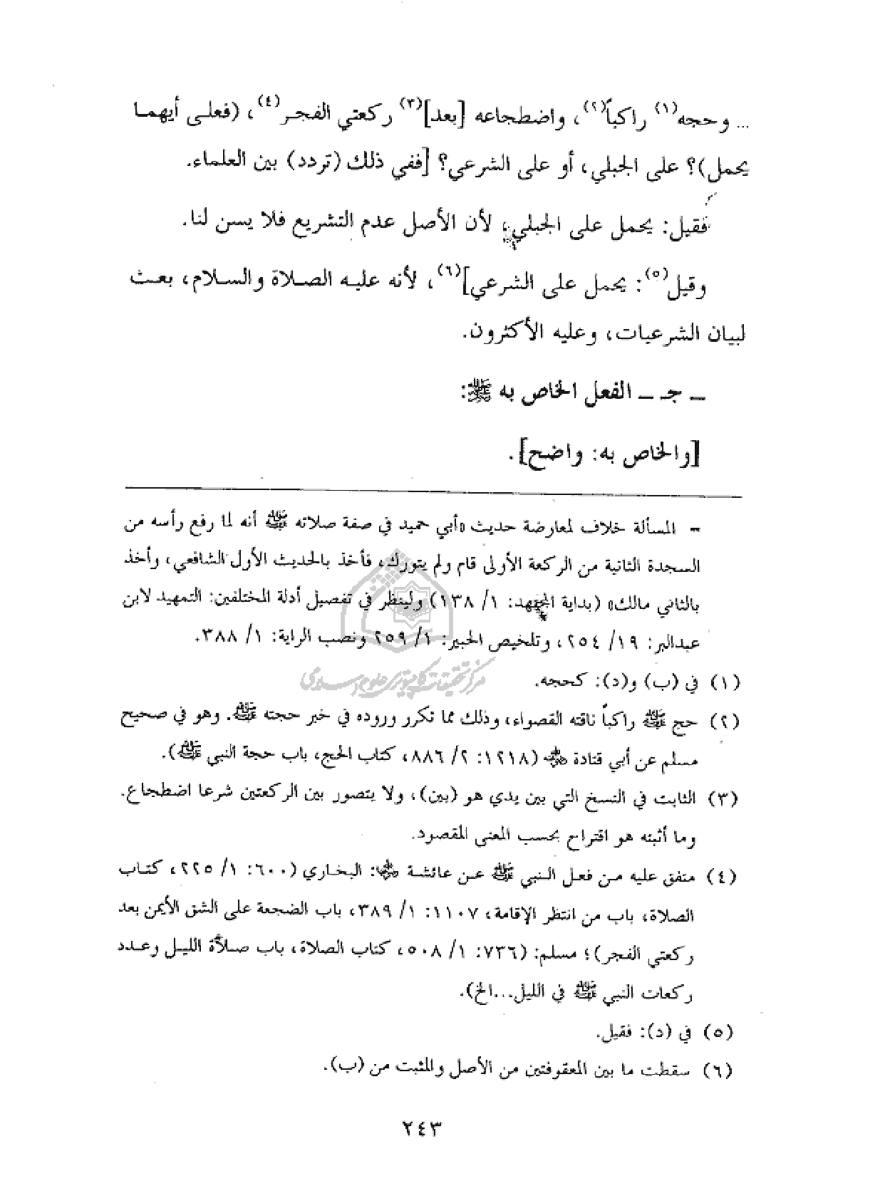 (¬٣) الثابت في النسخ التي بين يدي هو (بين)، ولا يتصور بين الركعتين شرعا اضطجاع. وما أثبته هو اقتراح بحسب المعنى المقصود.