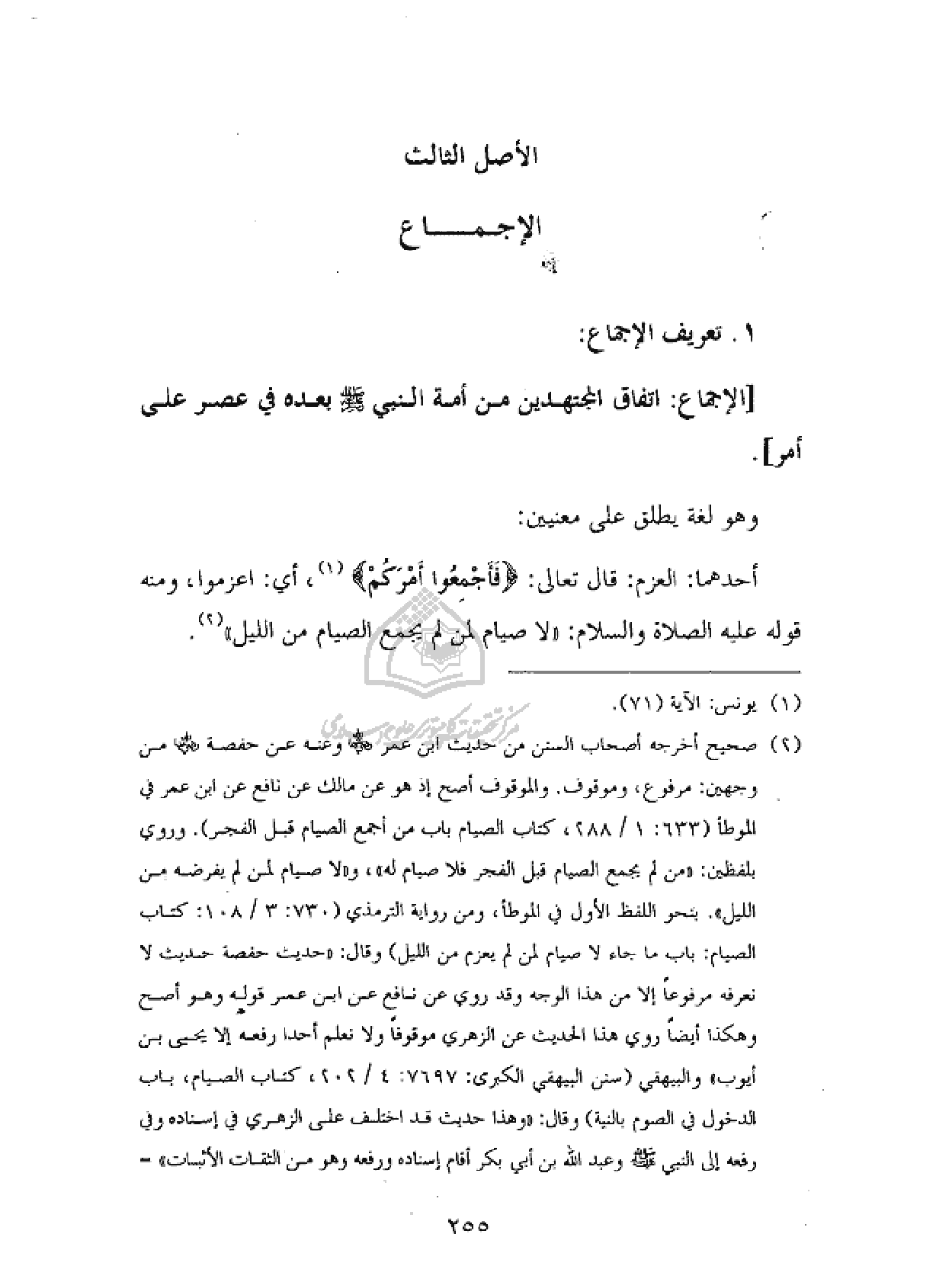 ١ - تعريف الإجماع: