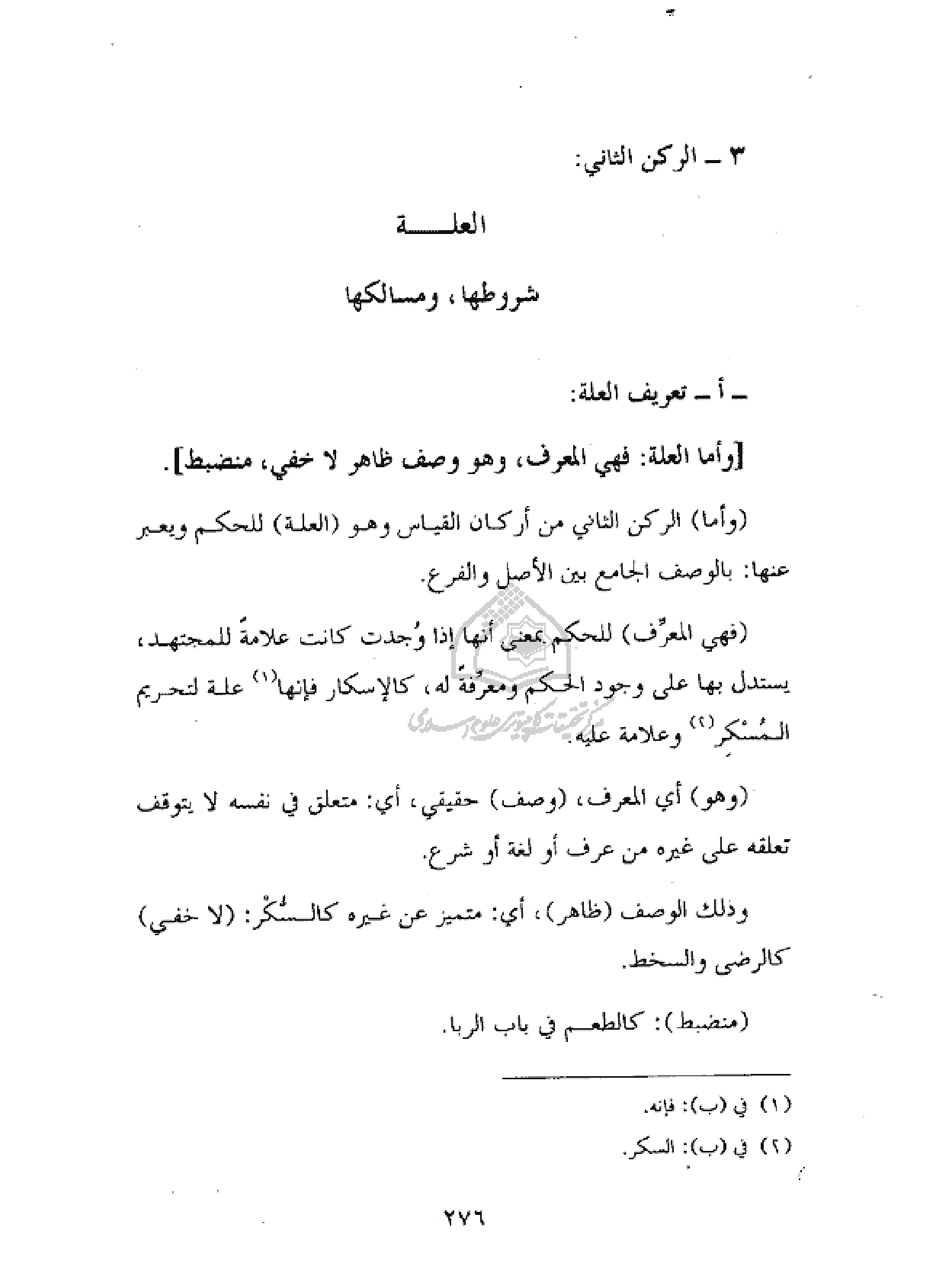 (وأما) الركن الثاني من أركان القياس وهو (العلة) للحكم ويعبر عنها: بالوصف الجامع بين الأصل والفرع.