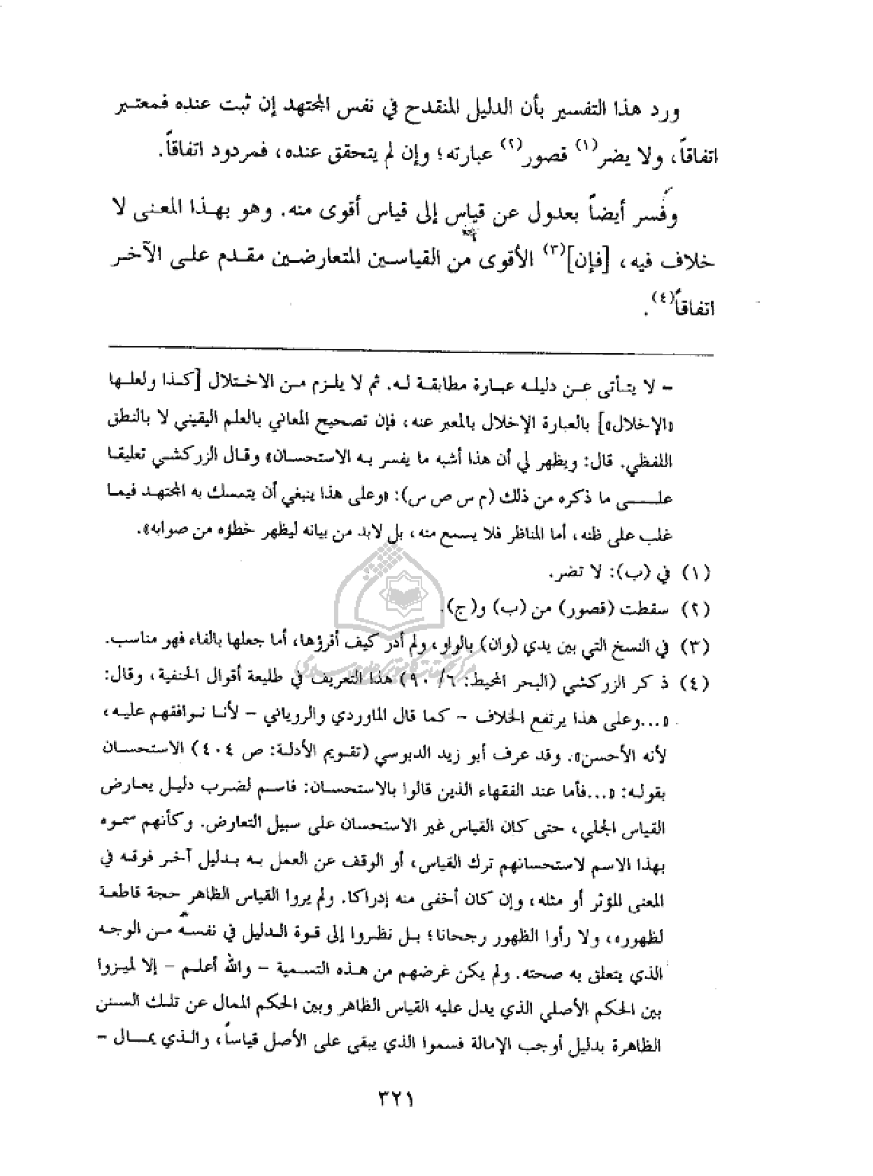 (¬٤) ذكر الزركشي (البحر المحيط : ٦/ ٩٠) هذا التعريف في طليعة أقوال الحنفية، وقال : «. . . وعلى هذا يرتفع الخلاف - كما قال الماوردي والروياني - لأنا نوافقهم عليه، لأنه الأحسن». وقد عرف أبو زيد الدبوسي (تقويم الأدلة : ص ٤٠٤) الاستحسان بقوله : «. . . فأما عند الفقهاء الذين قالوا بالاستحسان : فاسم لضرب دليل يعارض القياس الجلي، حتى كان القياس غير الاستحسان على سبيل التعارض. وكأنهم سموه بهذا الاسم لاستحسانهم ترك القياس، أو الوقف عن العمل به بدليل آخر فوقه في المعنى المؤثر أو مثله، وإن كان أخفى منه إدراكا. ولم يروا القياس الظاهر حجة قاطعة لظهوره، ولا رأوا الظهور رجحانا؛ بل نظروا إلى قوة الدليل في نفسه من الوجه الذي يتعلق به صحته. ولم يكن غرضهم من هذه التسمية - والله أعلم - إلا لميزوا بين الحكم الأصلي الذي يدل عليه القياس الظاهر وبين الحكم الممال عن تلك السنن الظاهرة بدليل أوجب الإمالة فسموا الذي يبقى على الأصل قياسا، والذي يمال -