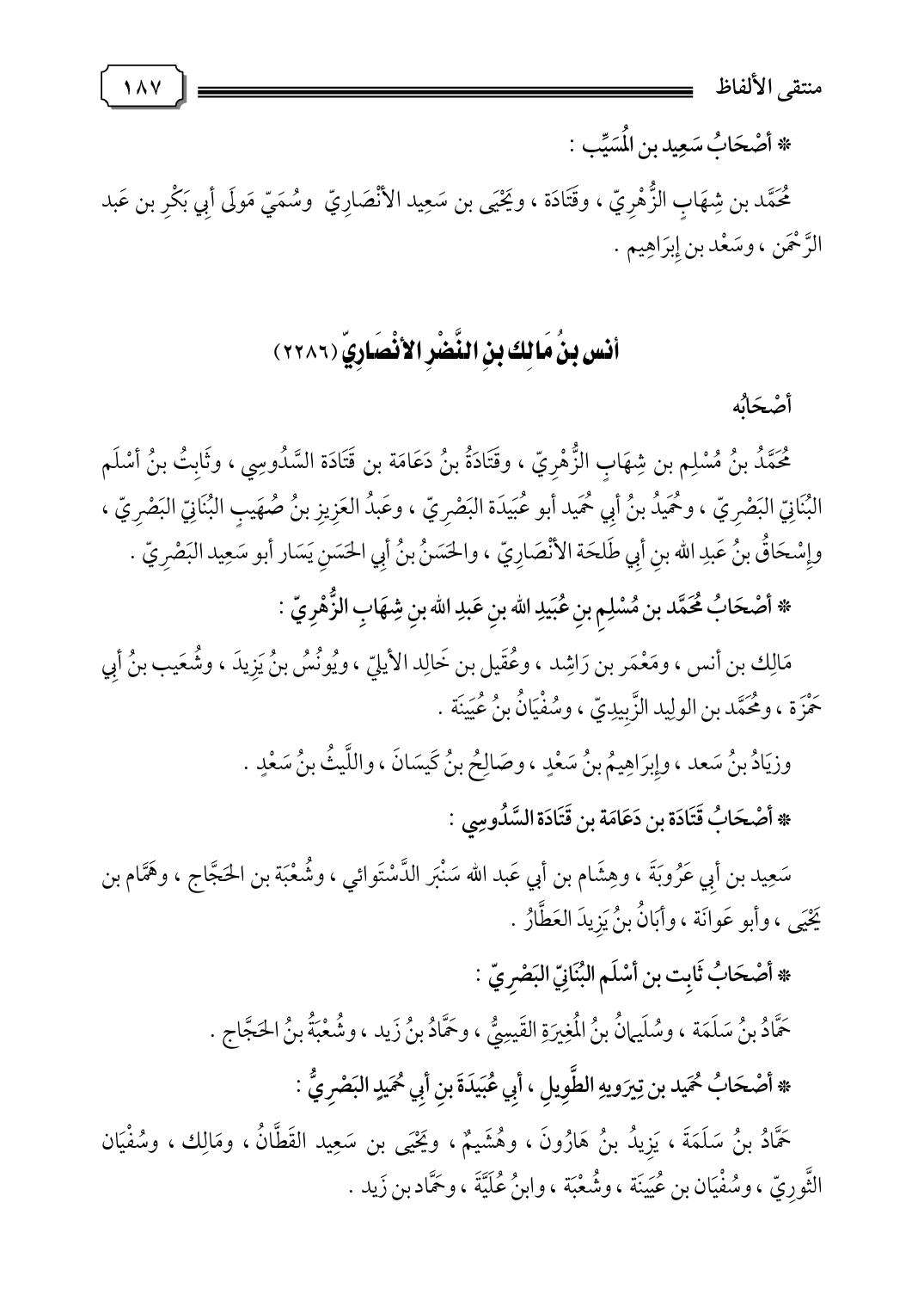 * أصْحَابُ مُحَمَّد بن مُسْلِمِ بنِ عُبَيدِ الله بنِ عَبدِ الله بنِ شِهَابِ الزُّهْرِيّ:
