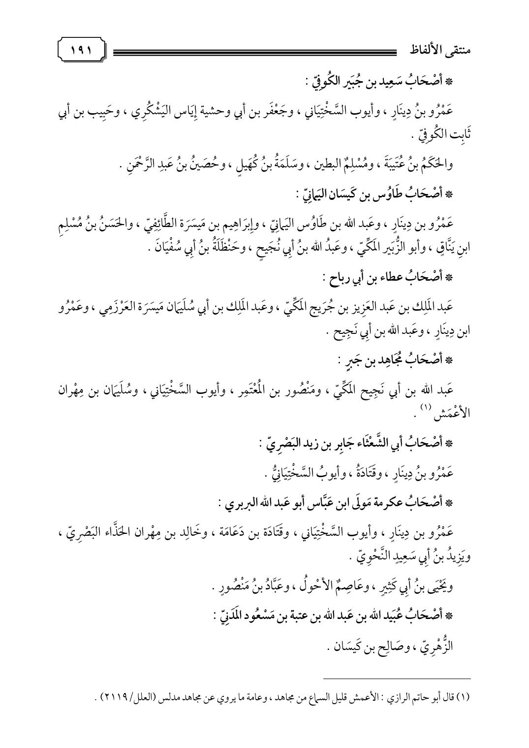 * أصْحَابُ مُجَاهِد بن جَبرٍ: