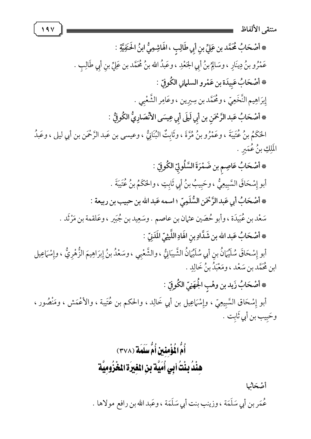 * أصْحَابُ عَبِيدَة بن عَمْرو السلماني الكُوفِيّ: