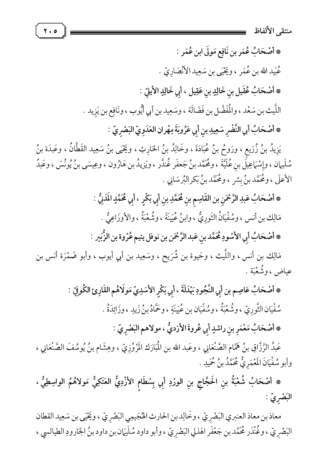 * أصْحَابُ شُعْبَةُ بنِ الحَجَّاجِ بنِ الورْدِ أبِي بِسْطَامٍ الأزْدِيُّ العَتَكِيُّ مَولاهُمُ الواسِطِيُّ، البَصْرِيّ: