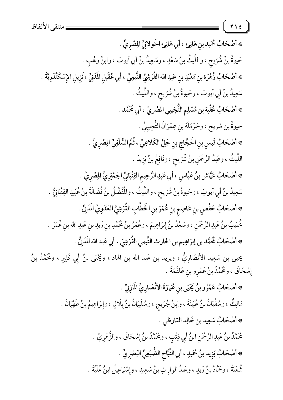 * أصْحَابُ حُمَيد بنِ هَانِئ، أبي هَانِئ الخَولانِيِّ المِصْرِيِّ.