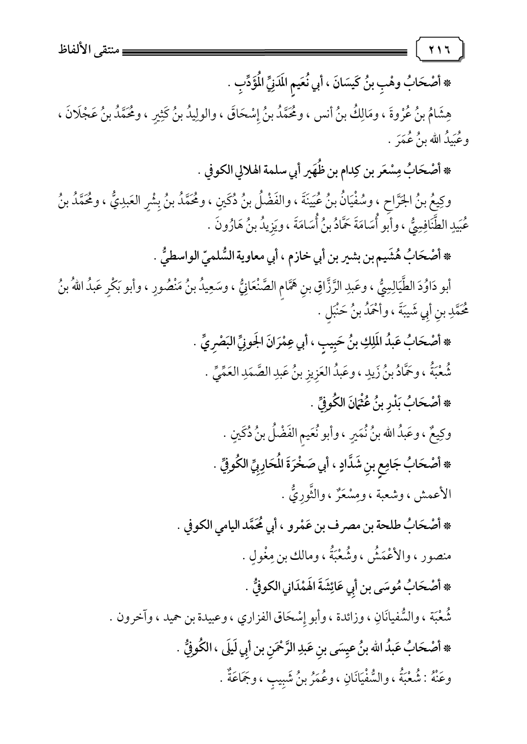 * أصْحَابُ مِسْعَر بن كِدام بن ظُهَير أبي سلمة الهلالي الكوفي.