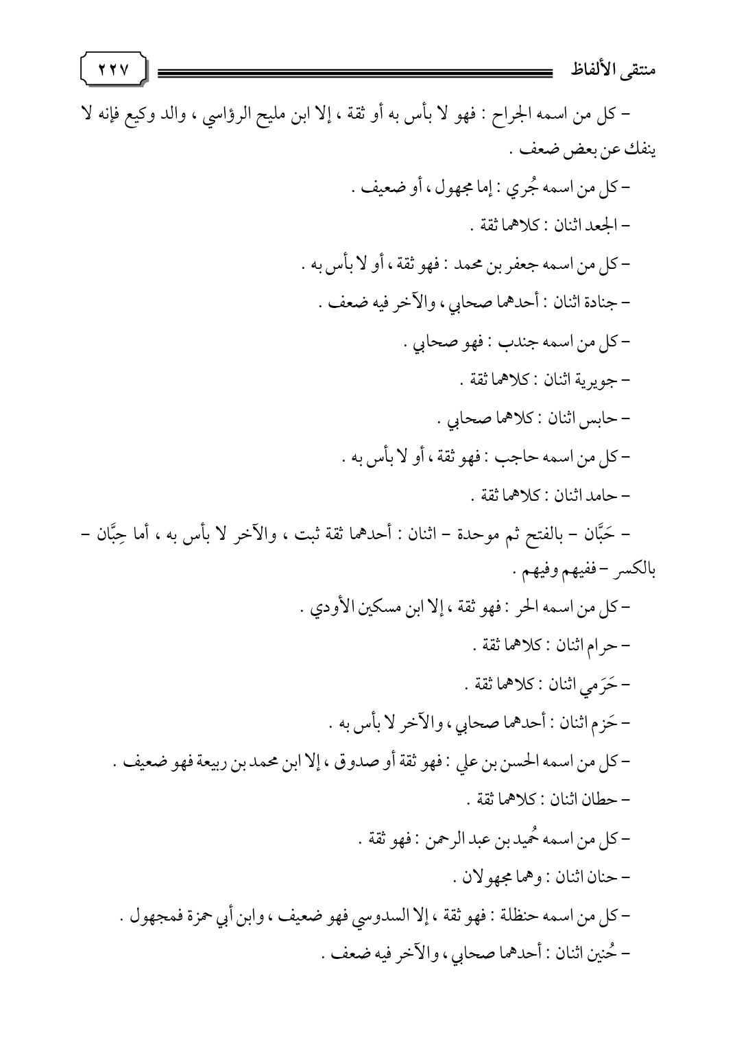 - كل من اسمه الجراح: فهو لا بأس به أو ثقة، إلا ابن مليح الرؤاسي، والد وكيع فإنه لا ينفك عن بعض ضعف.